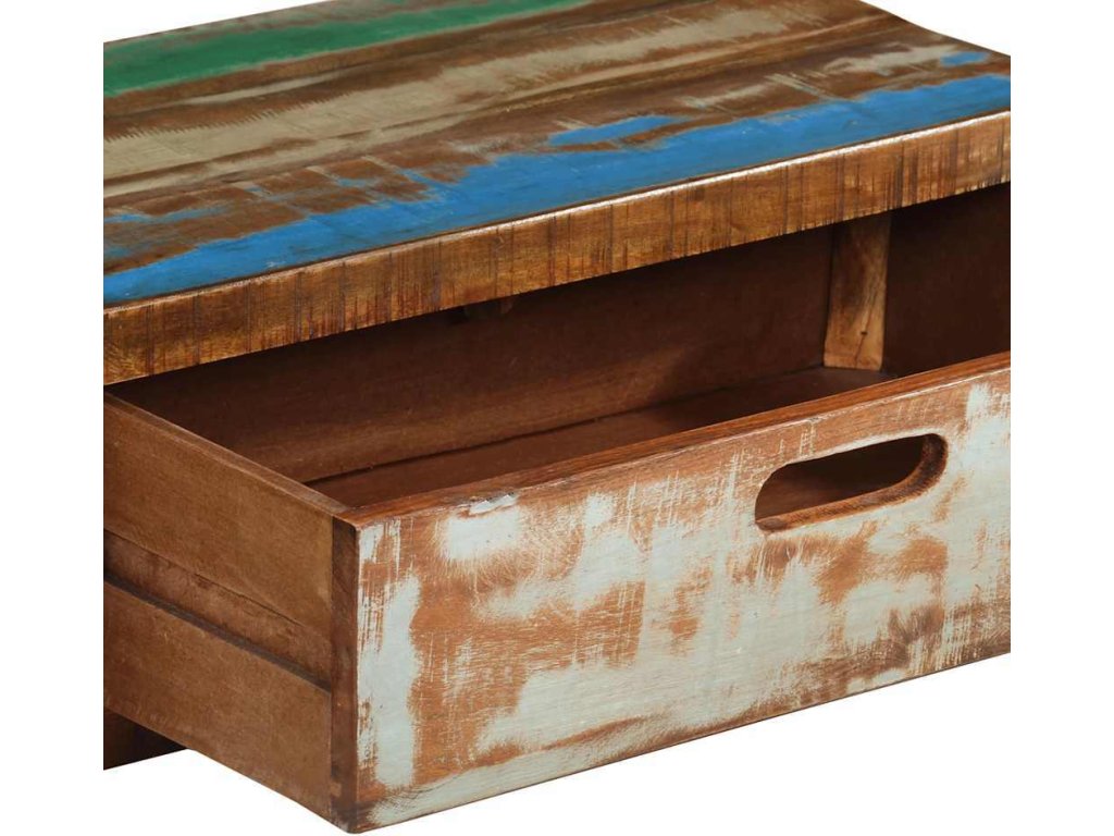 - Masivní recyklované dřevo: Masivní recyklované dřevo se skládá z opakovaně použitých dřevin, jako je teak, mangovník, borovice a buk. Toto dřevo pochází ze starých staveb, jako jsou továrny, kůlny a lodě. Jelikož je každý kus ručně vyrobený, odstíny se mohou u každého z nich lišit.