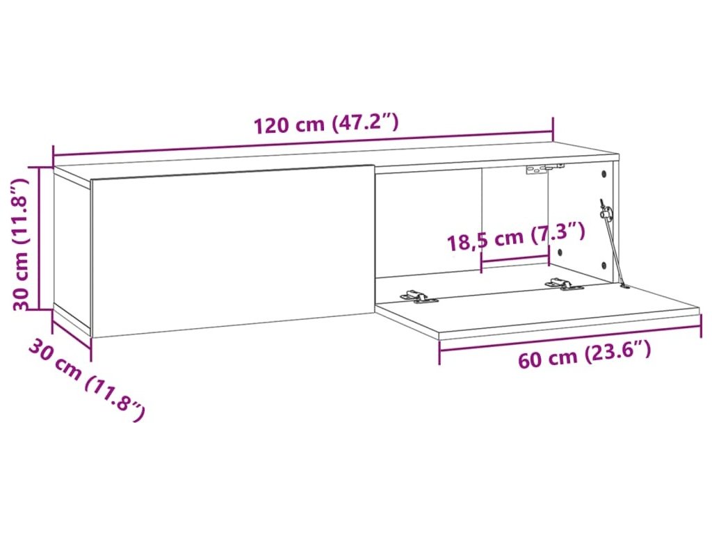 Stylový TV stolek se montuje na zeď, kde zapůsobí jako nadčasový doplněk vaší domácnosti. Obsahuje 2 přihrádky, je tedy ideální pro ukládání vašich časopisů, DVD a dalších věcí. Pro snazší přístup disponuje výklopnými dvířky. K očištění televizní skříňky vám postačí navlhčený hadřík.