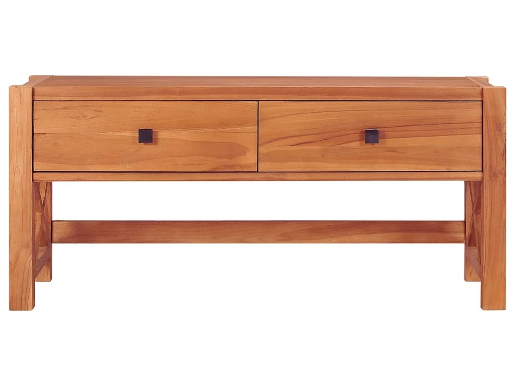 Tento TV stolek je vyrobený z teakového dřeva, které prošlo procesem smršťování, bylo uměle vysušené a poté jemně a dohladka obroušené, což mu propůjčuje velmi hladký vzhled. Teakové dřevo je oceňované pro svou výjimečnou pevnost, a proto je zdaleka nejvhodnějším materiálem pro výrobu nábytku. Tento stolek pod televizi má přírodní barvu a bytelnou desku z tvrdého dřeva. Lze na ni položit televizi, router či multimediální zařízení, skvěle se na ní však budou vyjímat i dekorativní předměty, jako jsou zarámované fotografie, mísy s ovocem nebo vázy. Tato dřevěná TV skříňka má 2 zásuvky, které vám poskytnou spoustu místa pro přehledné uložení všemožných menších předmětů, které tak budete mít hezky po ruce. Navíc je stolek odolný a snadno se čistí.