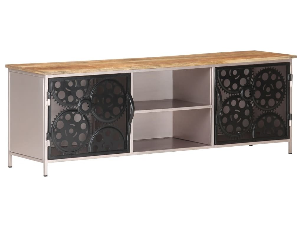 HiFi skříňka je vyrobená z hrubého mangovníkového dřeva a železa, takže je odolná a robustní. Na pevnou horní desku z tvrdého dřeva si můžete položit televizi či multimediální zařízení anebo si na ni vystavit různé dekorace, jako jsou zarámované fotografie, košíky s ovocem nebo vázy. Skříňka má 2 dvířka a 2 přihrádky, které nabízí spoustu úložného prostoru na všelijaké maličkosti. Dvířka jsou vyrobena ze skutečných řetězových kol, což jim dodává stylový a unikátní vzhled.