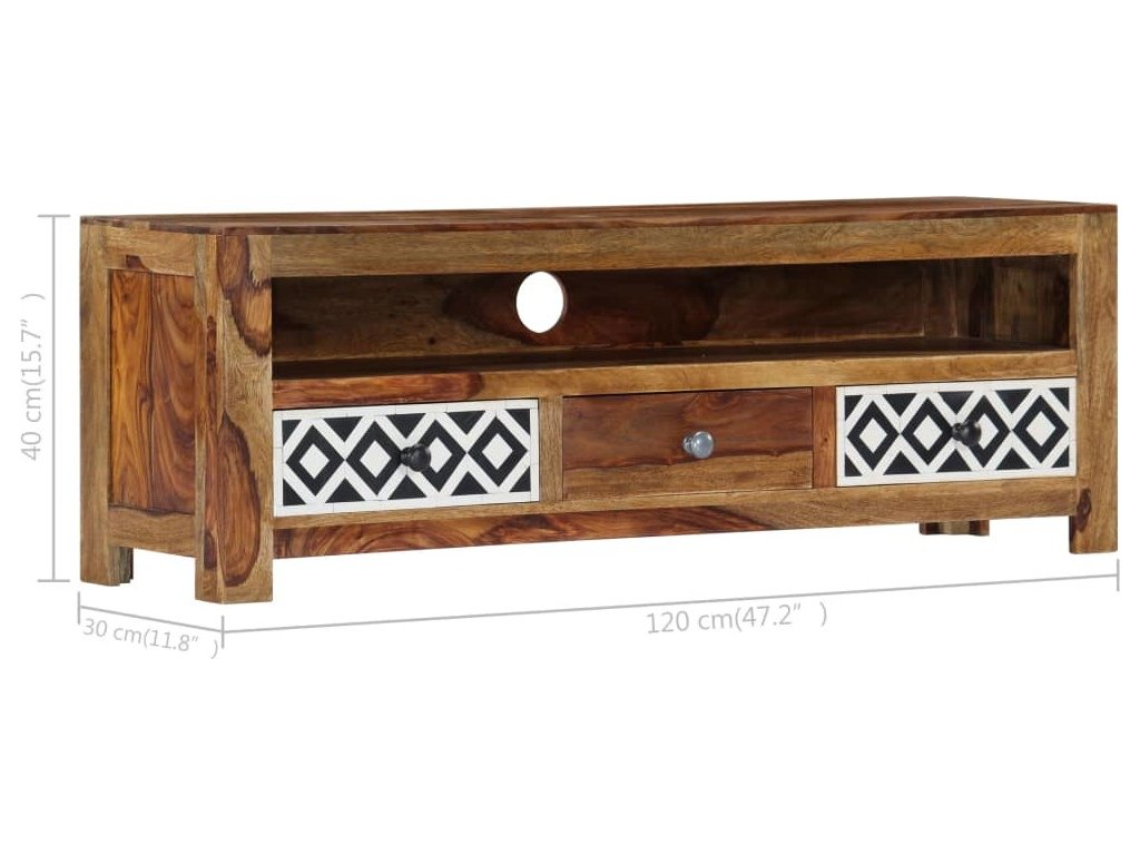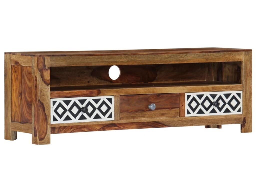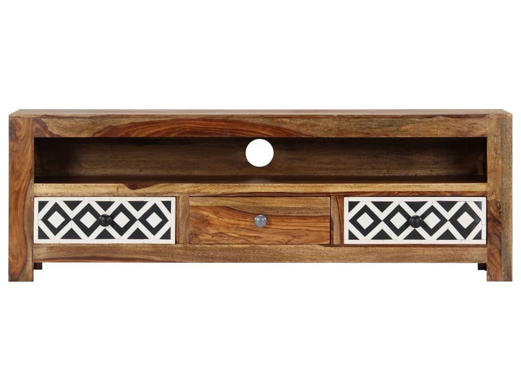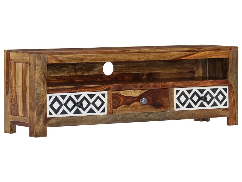 TV stolek ve vintage stylu je vyrobený z masivního akáciového dřeva a je ideálním nadčasovým doplňkem do vašeho domova. Akácie, jemuž se někdy také říká rosewood nebo palisandr, je tropické tvrdé dřevo proslulé svou bohatou texturou. Každá fáze výrobního procesu je prováděna s mimořádnou péčí, ať už se jedná o leštění, natírání nebo lakování. Televizní skříňka disponuje 3 zásuvkami, kam si můžete uložit nejrůznější drobnosti, a otevřenou přihrádkou pro ukládání multimediálních zařízení, herních konzolí a časopisů.