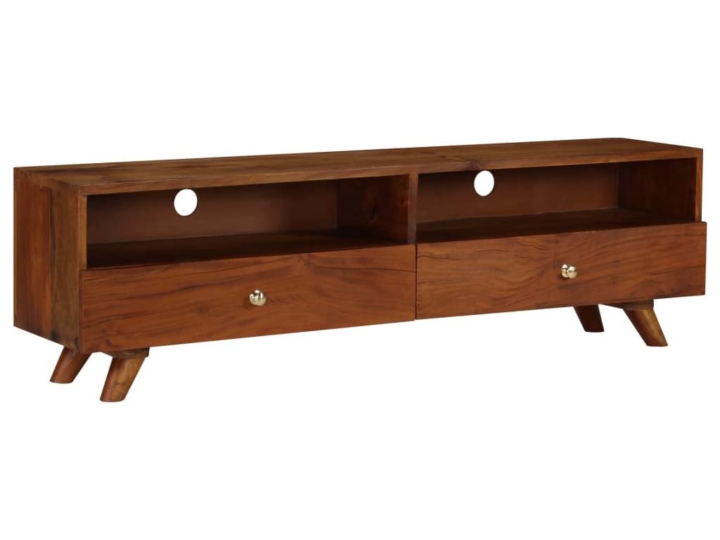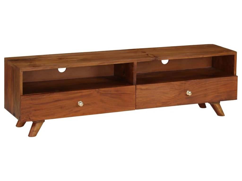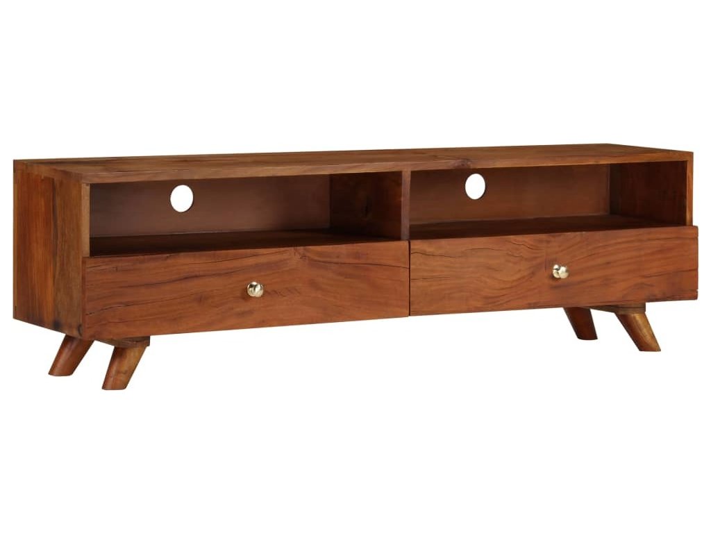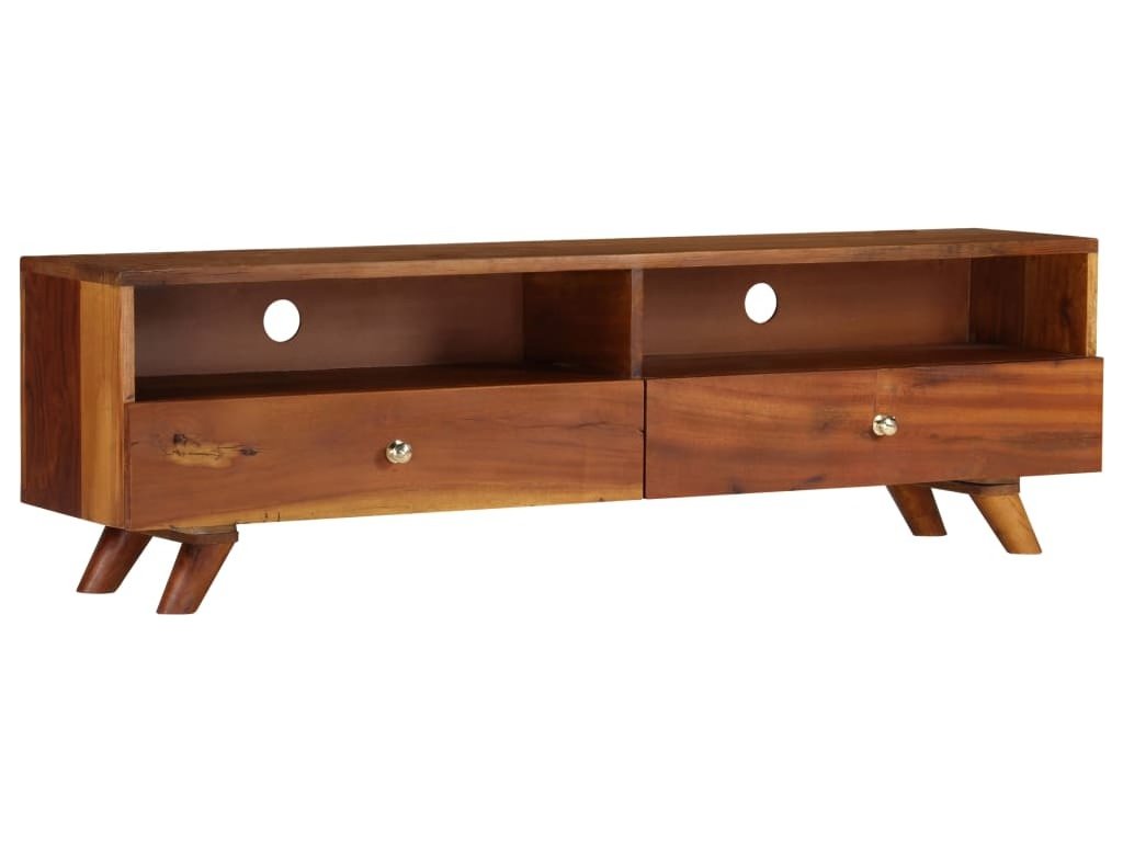 Dřevěný TV stolek v retro stylu má jednoduchý, praktický design, který zkrášlí každou místnost. Je velmi stabilní a odolný. Má 2 skříňky a 2 otevřené police, kam si můžete uložit multimediální zařízení, herní konzole nebo třeba časopisy. TV stolek můžete rovněž použít jako odkládací stolek, HiFi stolek apod.