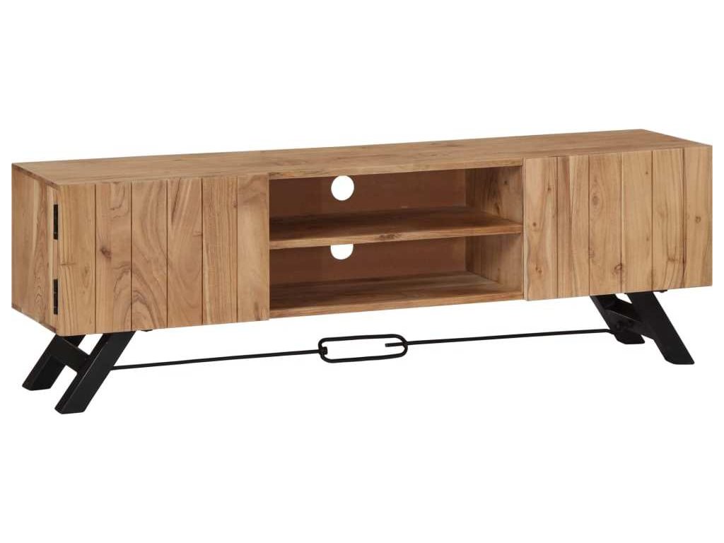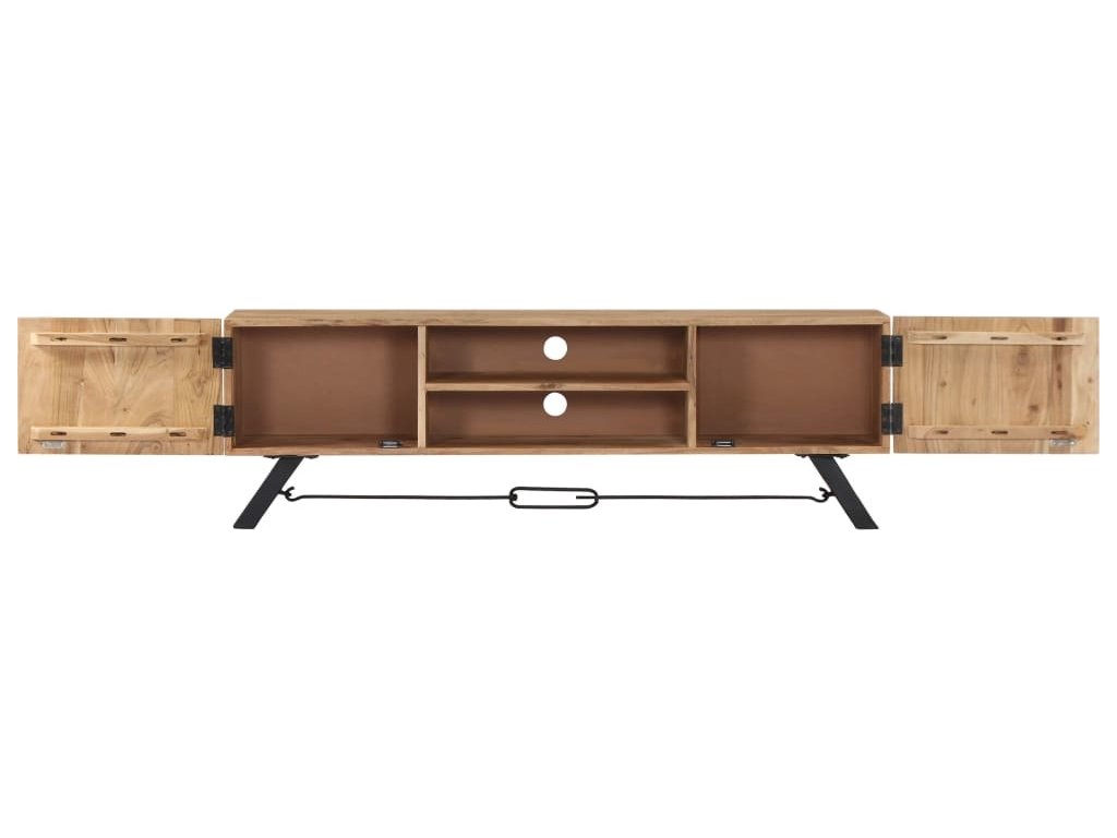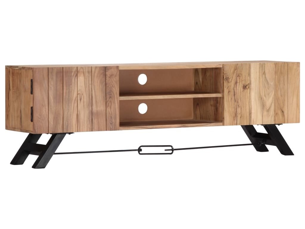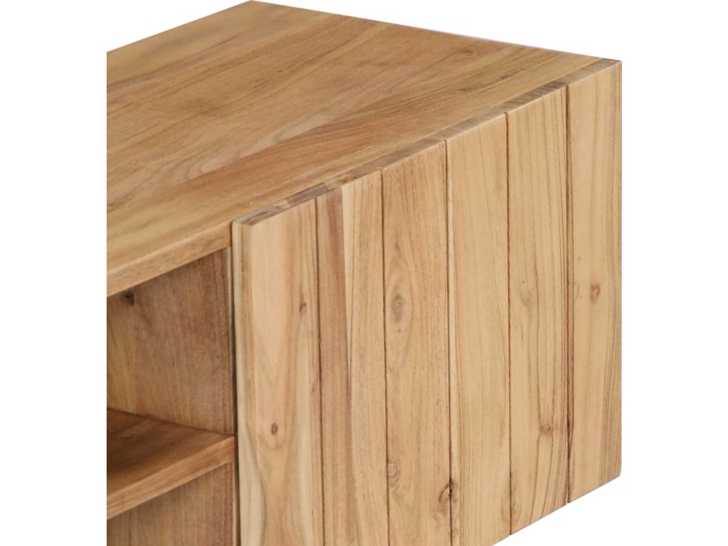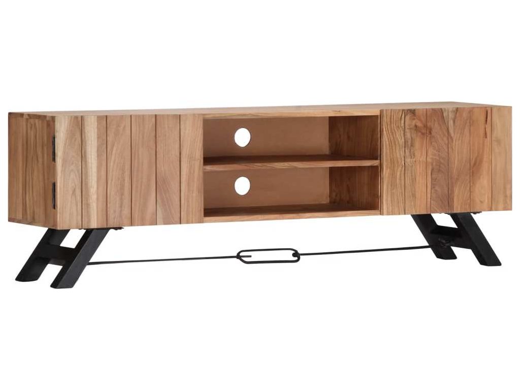 Odkládací skříňka je vyrobena z masivního akáciového dřeva s povrchovou úpravou, které vděčí za svůj překrásný vzhled. Kromě půvabného designu se může pochlubit také výjimečnou stabilitou, odolností a estetičností. Skříňka je navíc celá ručně vyrobená a elegantní kresba dřeva činí každý kus nábytku zcela jedinečným a lehce odlišným od ostatních. Stolek pod televizi disponuje 2 přihrádkami a 2 zavíracími skříňkami, které vám poskytnou spoustu místa, kde si můžete uspořádat svá multimediální zařízení, knížky, boty a nejrůznější další věci.