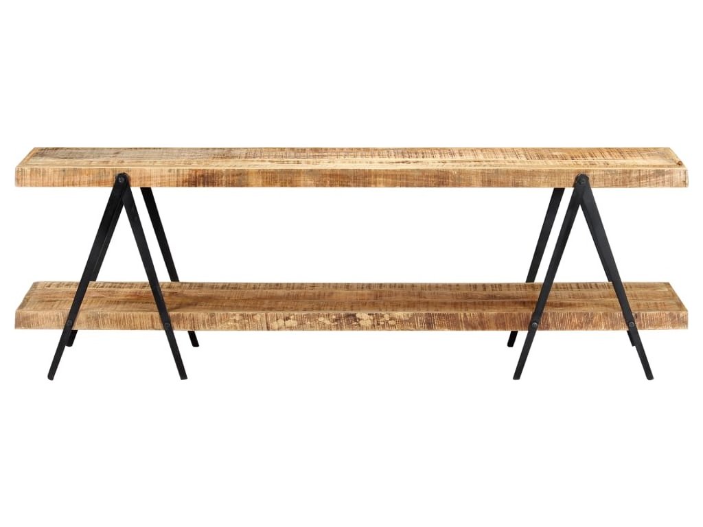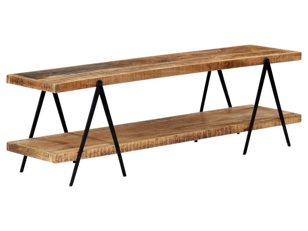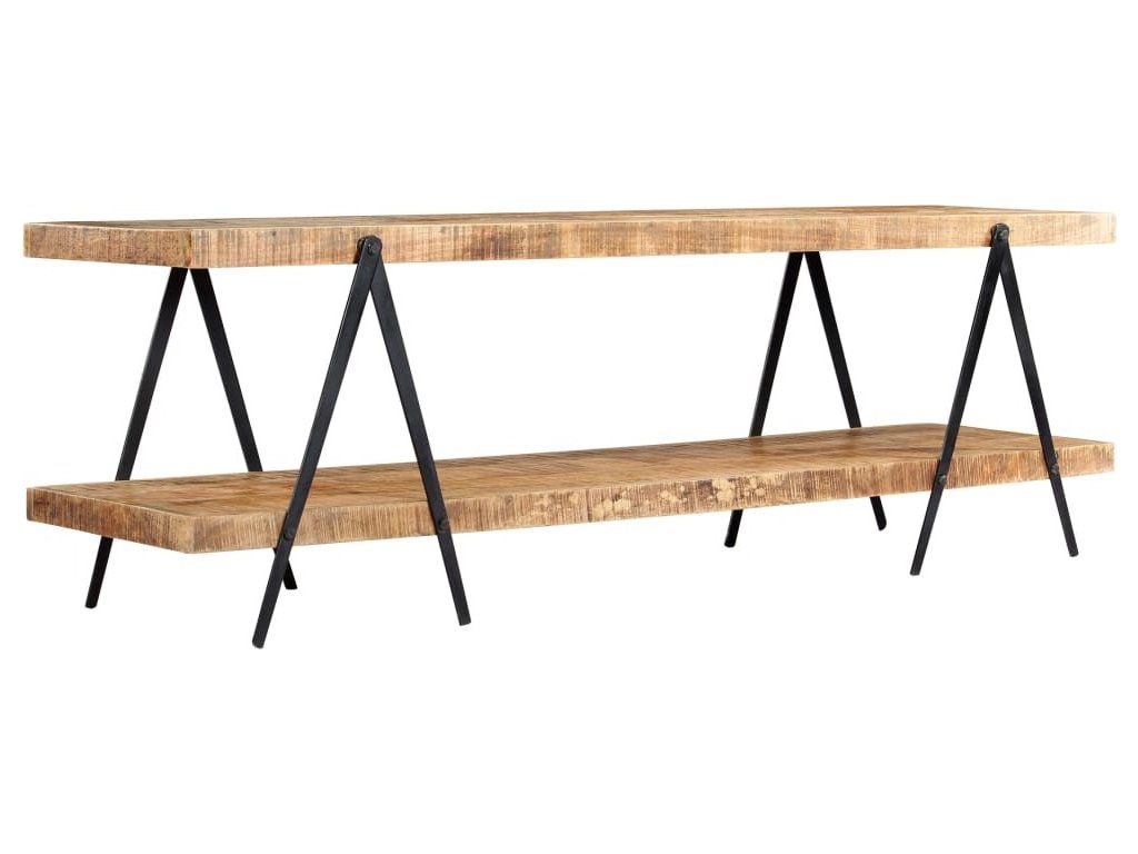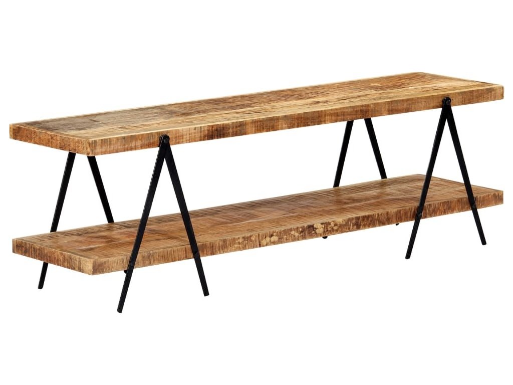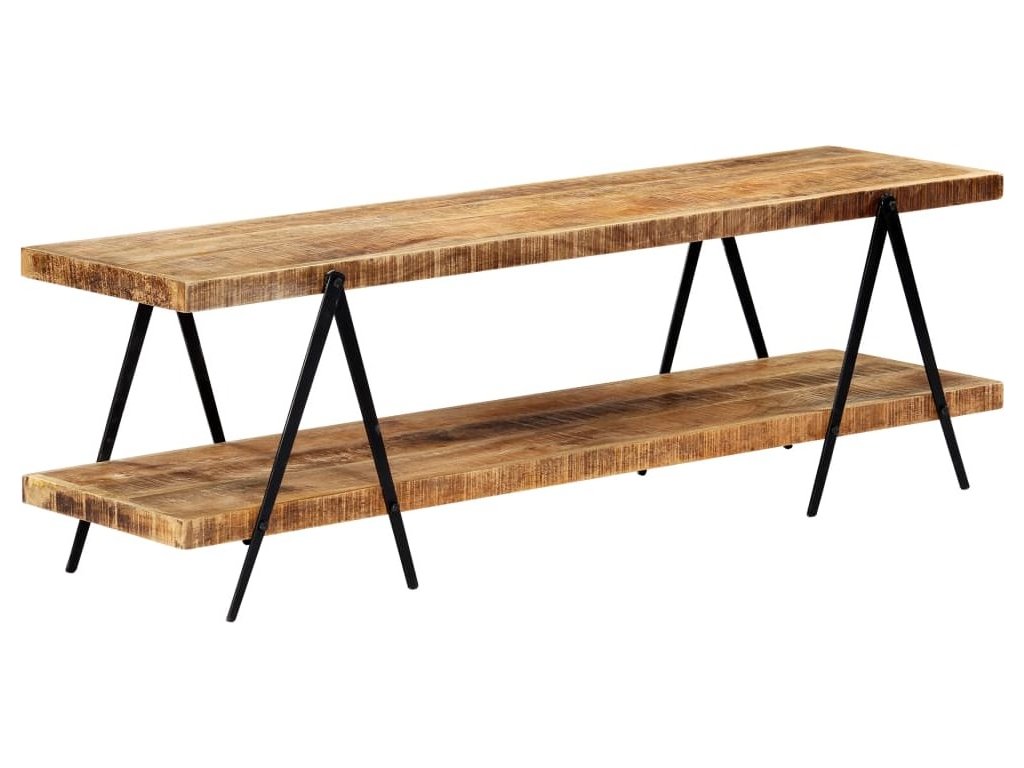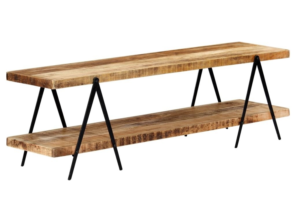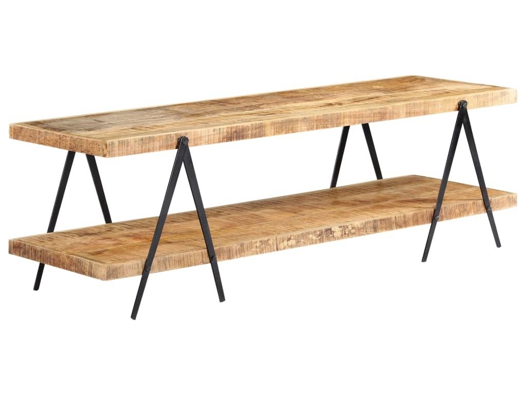 TV stolek je vyroben z masivního mangovníku, tvrdého dřeva s hustou texturou. Hrubé mangovníkové dřevo je nejen schopné unést značnou váhu, ale výborně také odolává opotřebení a působení času. Odkládací skříňka s překrásným designem je proto stabilní, odolná a příjemná na pohled. Precizní řemeslné zpracování a unikátní kresba dřeva dávají vzniknout jedinečným kusům nábytku, které se lehce liší od všech ostatních. Každé fázi výrobního procesu byla věnována mimořádná péče, ať už se jedná o leštění anebo lakování. Televizní stolek má 2 prostorné police, kam si můžete uložit svá multimediální zařízení, knížky a všelijaké další věci. Rám s práškovým lakováním přispívá k pevnosti konstrukce a zdůrazňuje také industriální šarm nábytku. Sestavení tohoto produktu je snadné.