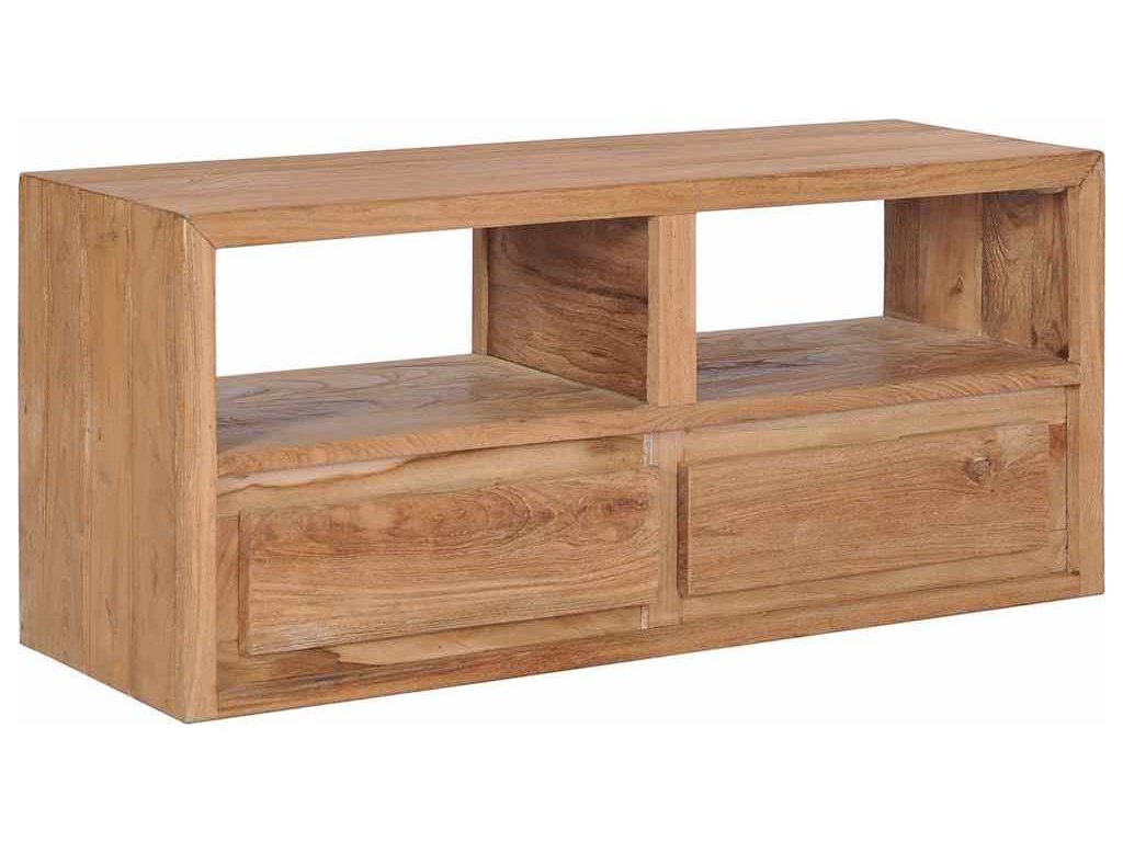 Tato TV skříňka ve vintage stylu je vyrobená z masivního teakového dřeva a stane se nadčasovým doplňkem vašeho domova. Každá fáze výrobního procesu se provádí s největší péčí, ať už se jedná o leštění, natírání nebo lakování. Pevný rám zaručuje výjimečnou robustnost a odolnost tohoto televizního stolku. Je vybaven 2 zásuvkami, které vám poslouží k uložení nejrůznějších drobností, a 2 otevřenými přihrádkami pro vaše multimediální zařízení, herní konzole a časopisy.