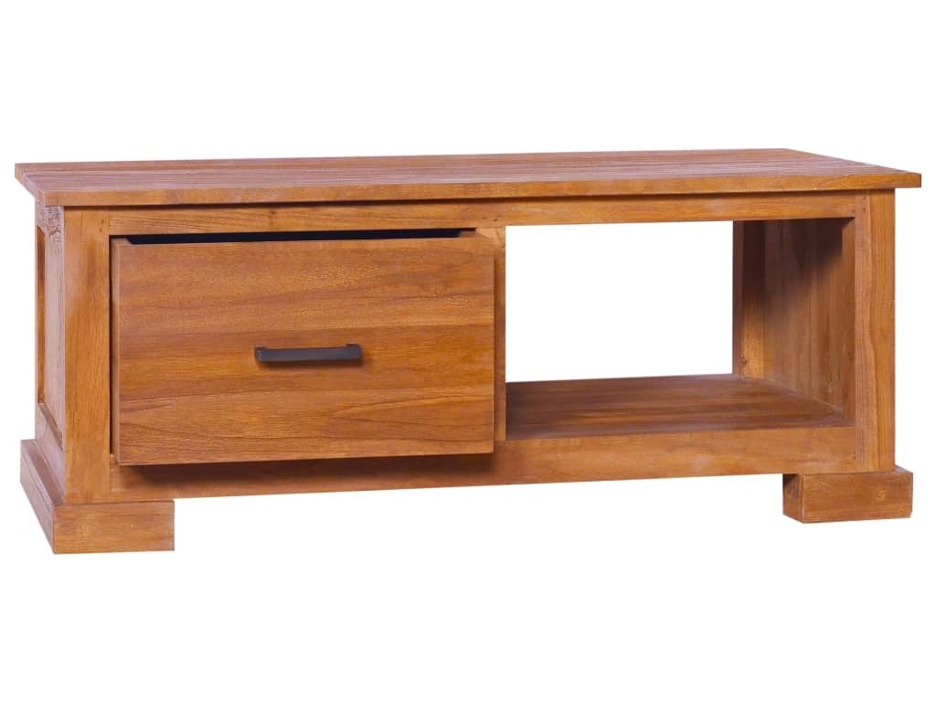 TV stolek z masivního teakového dřeva je perfektní volba, pokud chcete přinést do vašeho obývacího pokoje koloniální styl.