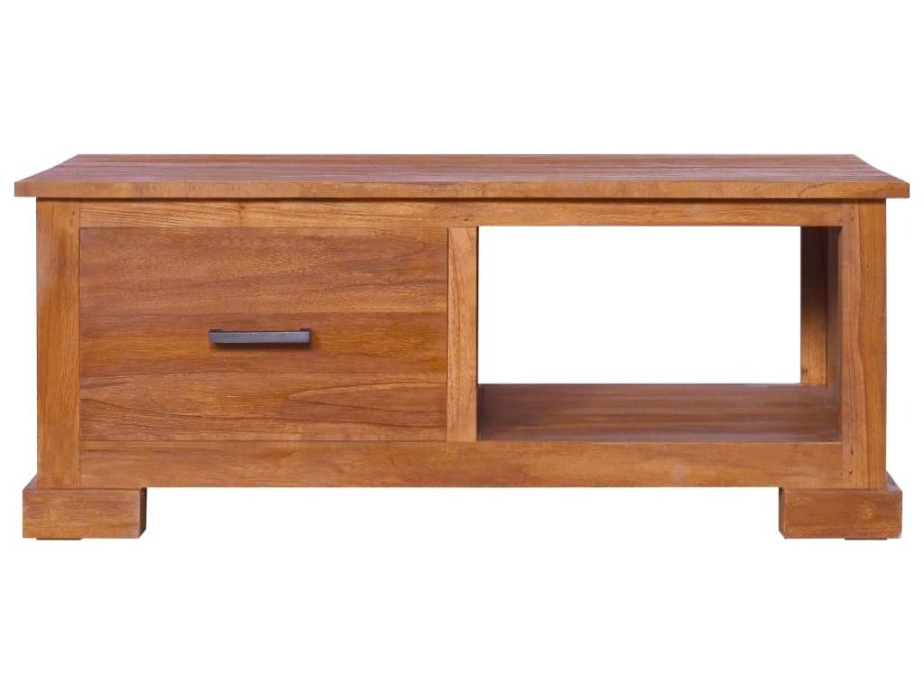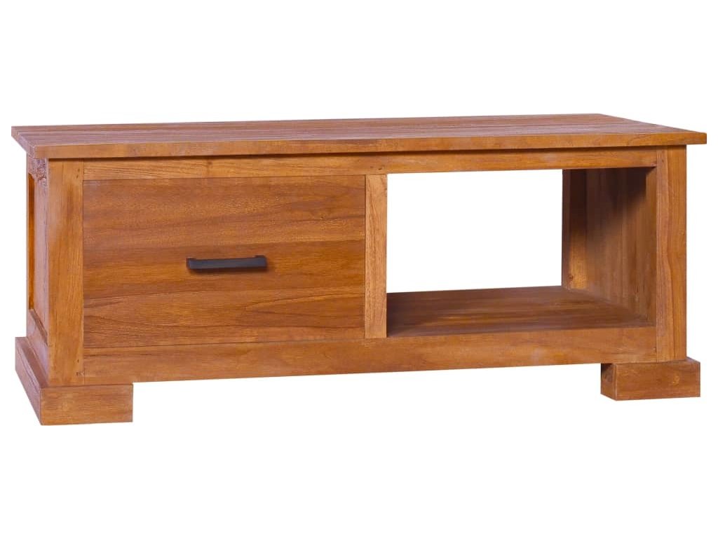 Televizní stolek je zhotovený z teakového tvrdého dřeva, které již prošlo procesem smršťování, bylo uměle vysušené a poté jemně a dohladka obroušené. Teakové dřevo je oceňované pro svou výjimečnou pevnost, a proto je zdaleka nejvhodnějším materiálem pro výrobu nábytku. Jedná se o skvělou volbu, pokud si chcete pořídit vybavení, které vám bude sloužit dlouhá léta. TV skříňka má 1 zásuvku a 1 otevřenou přihrádku, takže vám poskytne spoustu úložného prostoru pro přehlednou organizaci vašich potřeb.