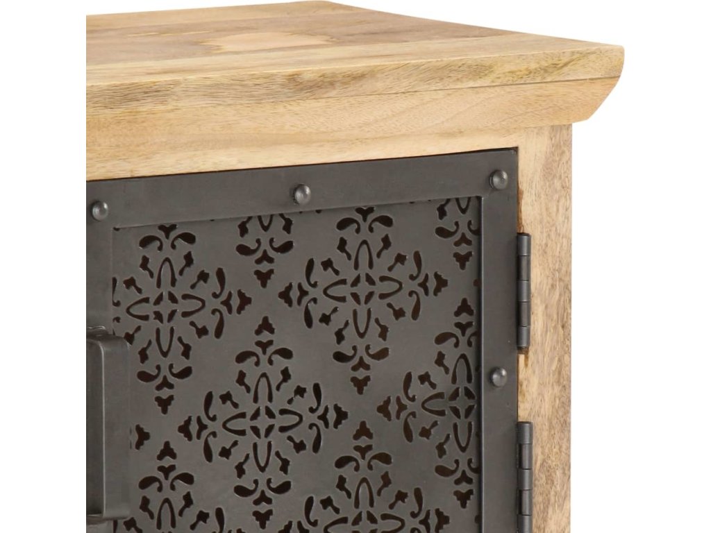 Tato úložná skříňka do obývacího pokoje z masivního mangovníkového dřeva byla zručně vyleštěná, natřená a lakovaná a na první pohled zaujme svou nádhernou a rafinovanou povrchovou úpravou. Vyřezávaná ocelová dvířka ještě víc zdůrazňují její krásu. Nabízí dostatek úložného prostoru pro vaše knihy, časopisy nebo další osobní potřeby, které chcete mít na dosah ruky. Skříňka se také také snadno čistí vlhkým hadříkem.