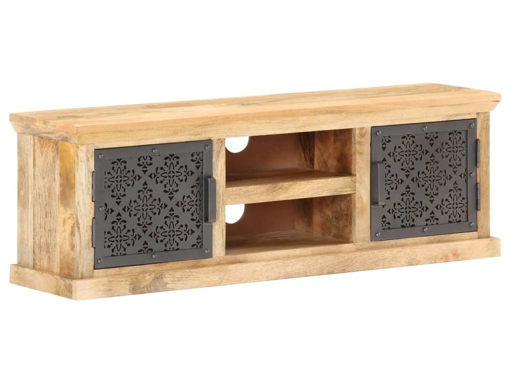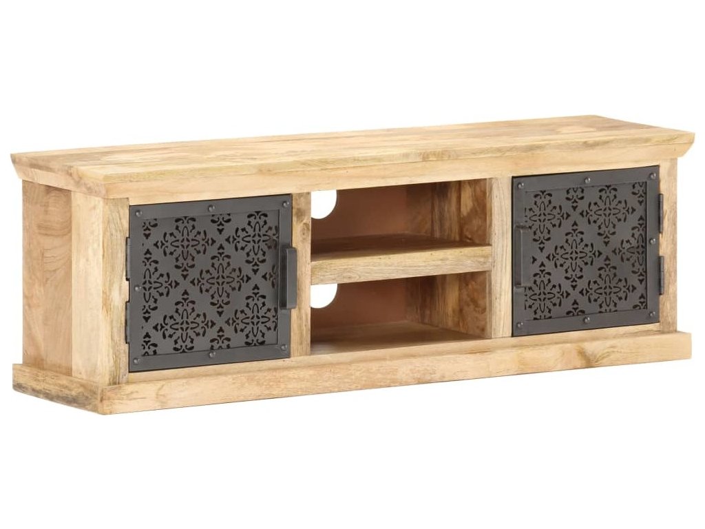 TV stolek s ocelovými dvířky 120 x 30 x 40 cm masivní mangovník [289095]