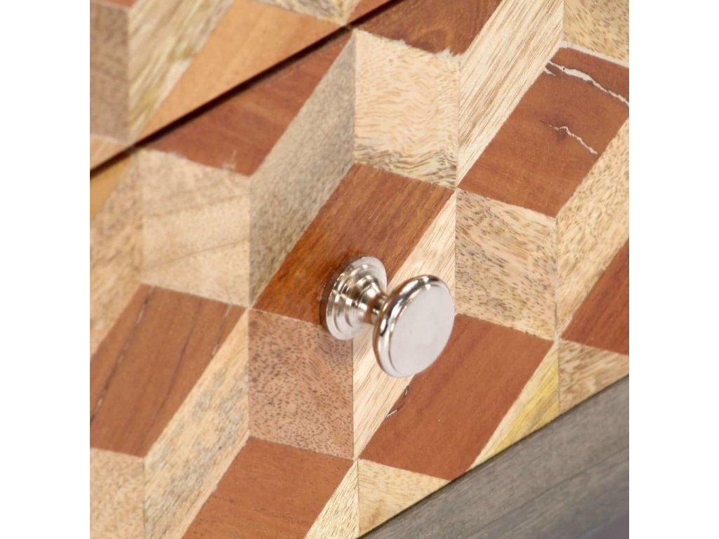 Má 1 dvířka, 2 zásuvky a 2 přihrádky, ve kterých najdete spoustu úložného prostoru. Jedná se tedy nejen o dekorativní, ale i praktický doplněk do vašeho obývacího pokoje či ložnice. Skříňka je vyrobena z masivního mangovníkového dřeva a byla naleštěna, natřena a nalakována, čemuž vděčí za svůj půvabný a rafinovaný vzhled. Její krásu navíc umocňuje motiv ve tvaru diamantu na dveřích a zásuvkách. Sestavení stolku pod televizi je jednoduché a k jejímu čištění vám postačí navlhčený hadřík.