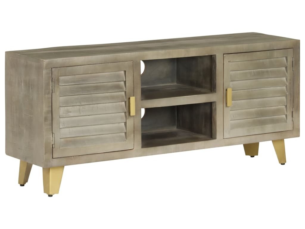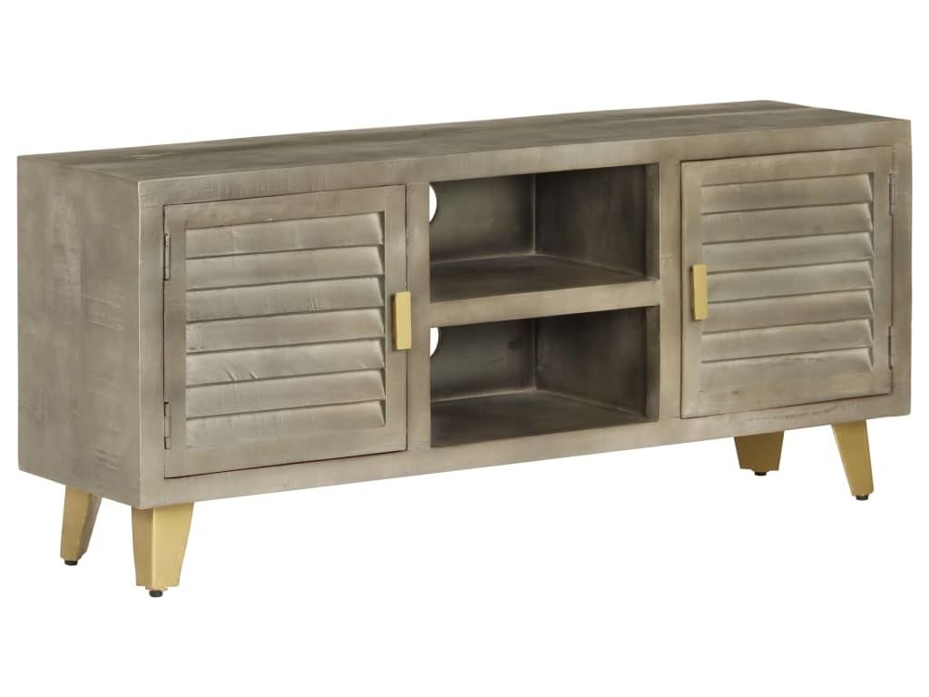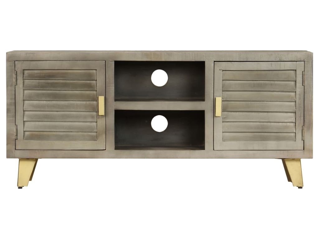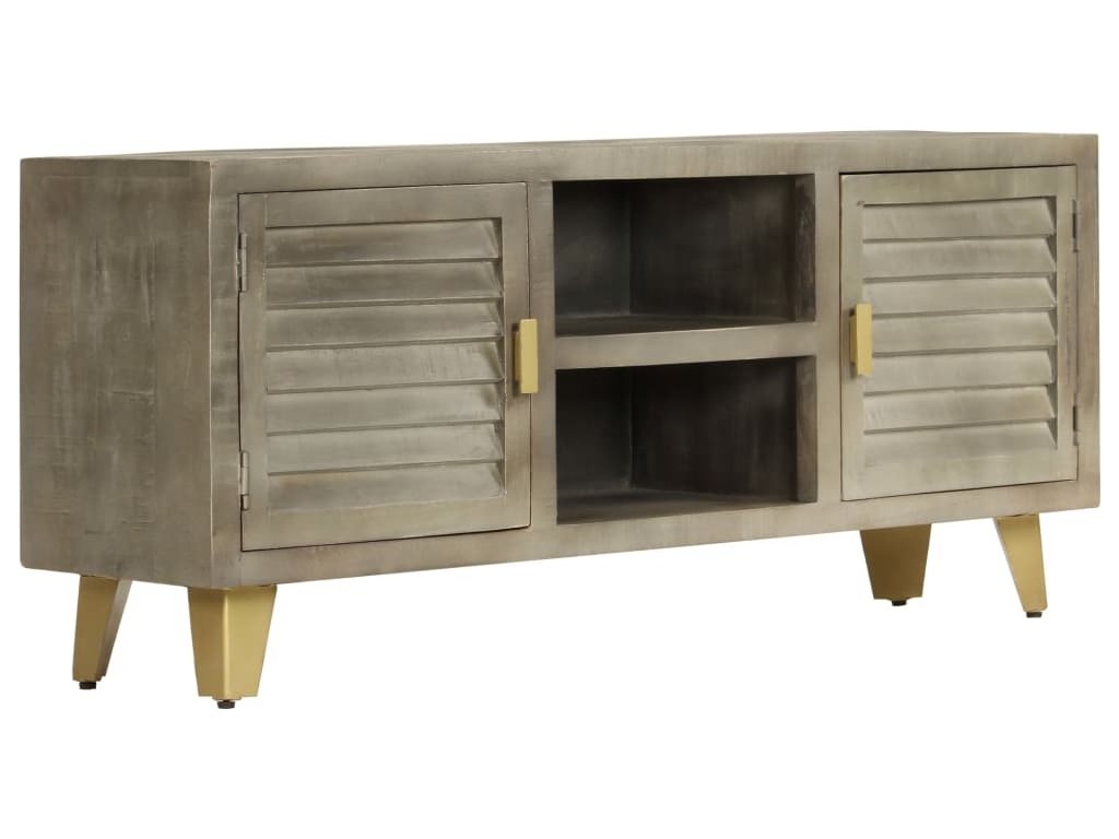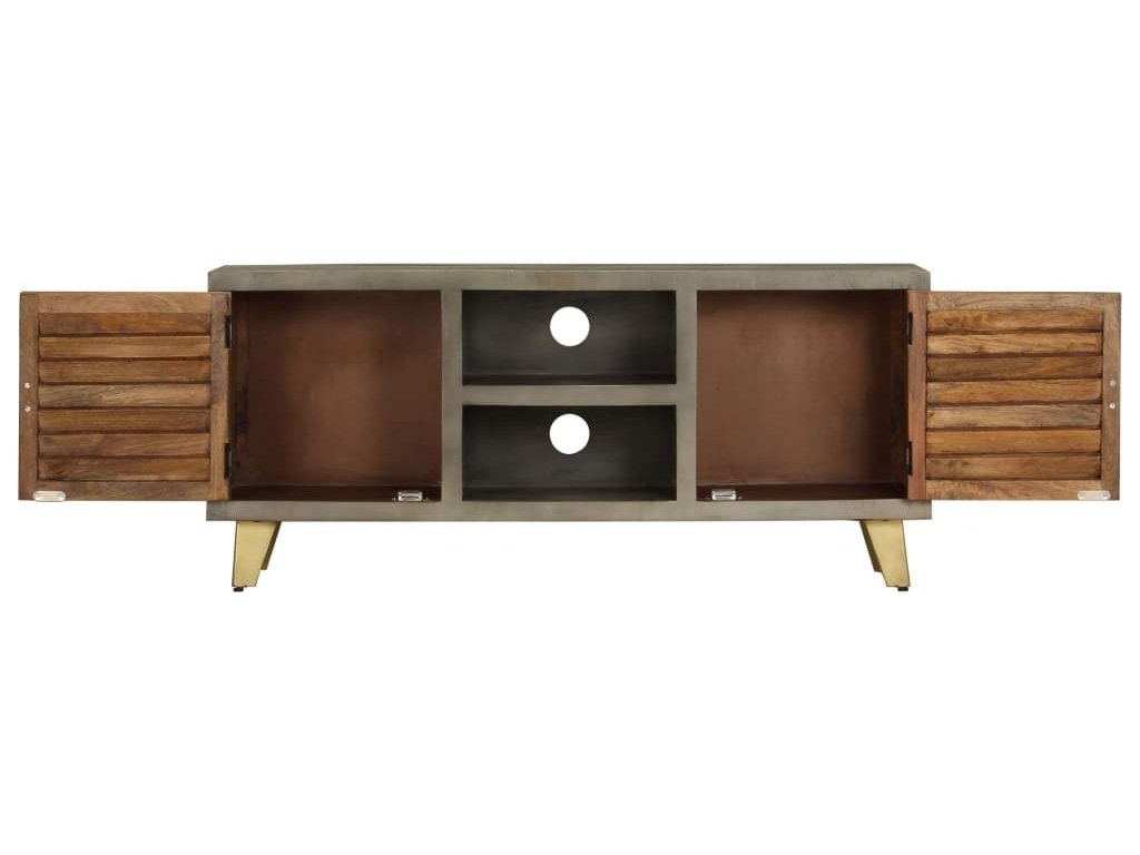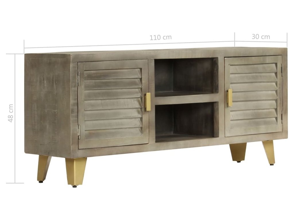 TV stolek šedý s mosazí 110 x 30 x 48 cm masivní mangovník [246681]