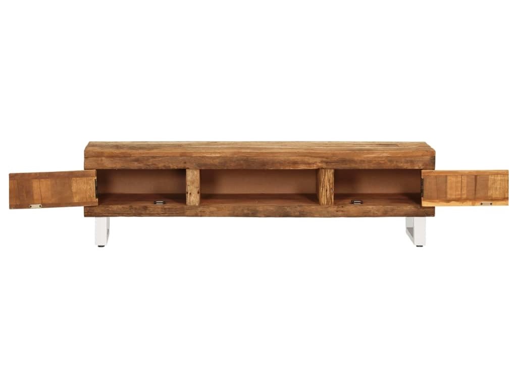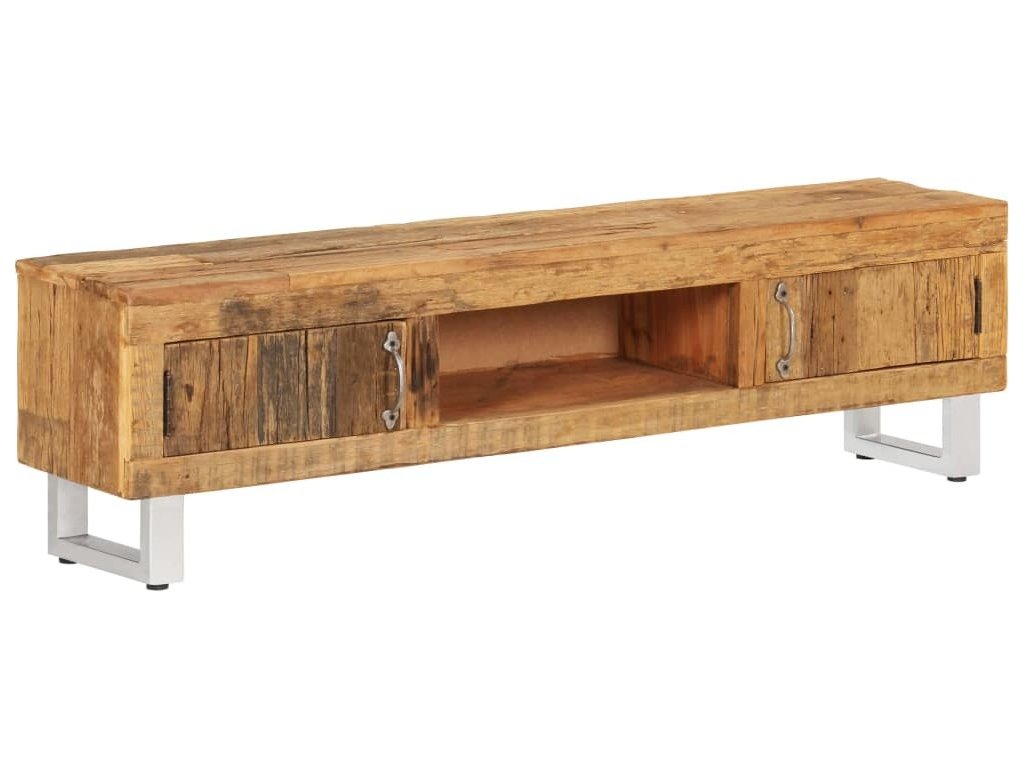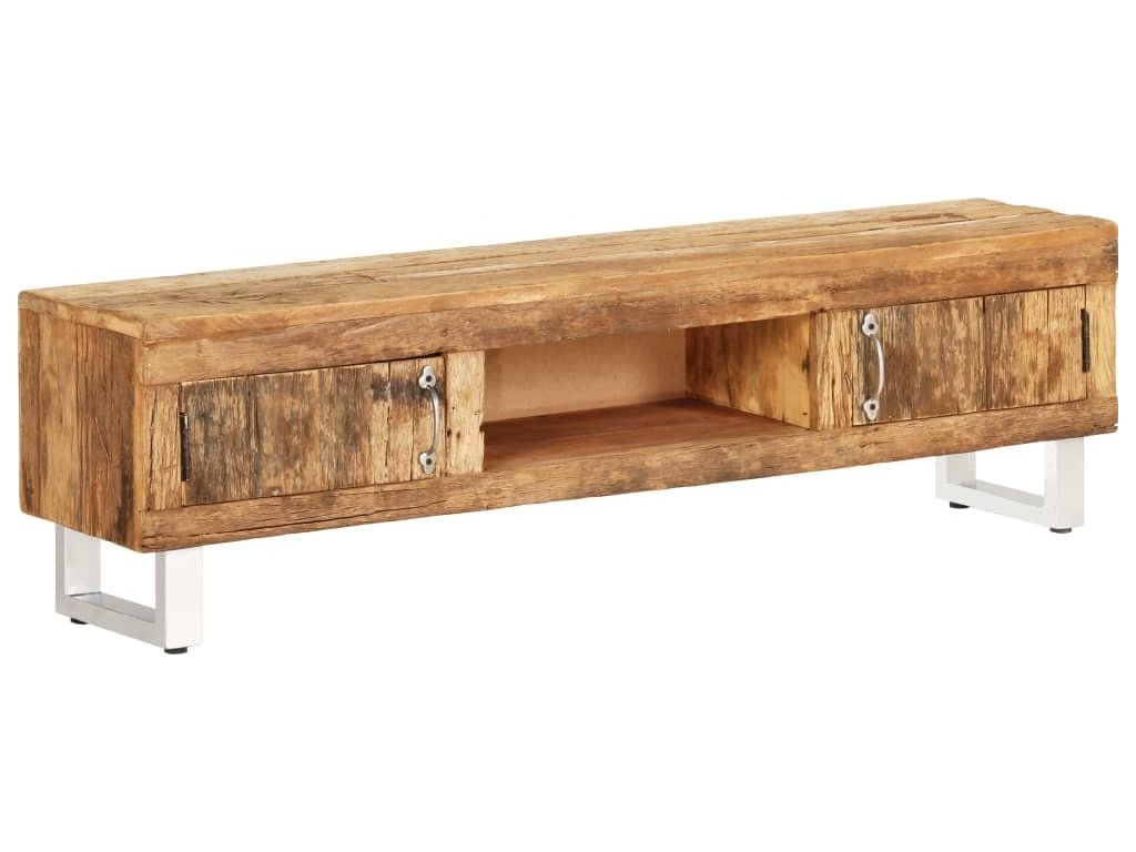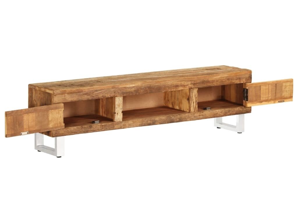 TV stolek je ručně vyrobený z masivního recyklovaného dřeva. Hrubý vzhled dřeva a precizní řemeslné zpracování dávají TV stolku překrásný retro vzhled. Každému kroku řemeslné výroby byla věnovaná náležitá péče, ať už se jedná o leštění, natírání či lakování. Nádherná kresba dřeva činí každý kus nábytku jedinečným a lehce odlišným od všech ostatních.