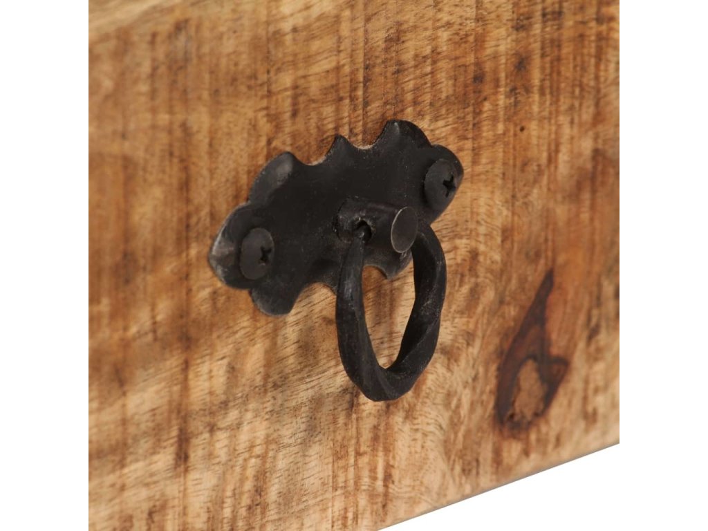 - Materiál: masivní mangovníkové dřevo, pražcové dřevo a ocelové nohy