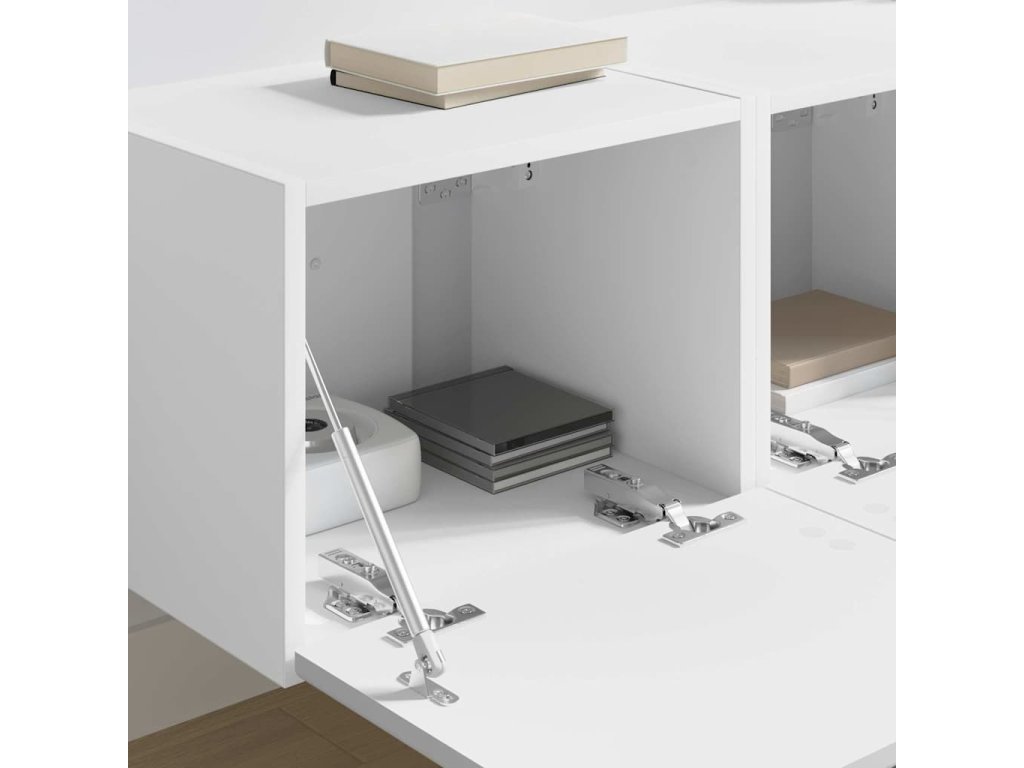 - Univerzální dveře: Dveře s pánty 90° umožňují snadný přístup a optimálně využívají prostor ve vašem obývacím pokoji. To přispívá k elegantnímu vzhledu a funkčnosti skříně.