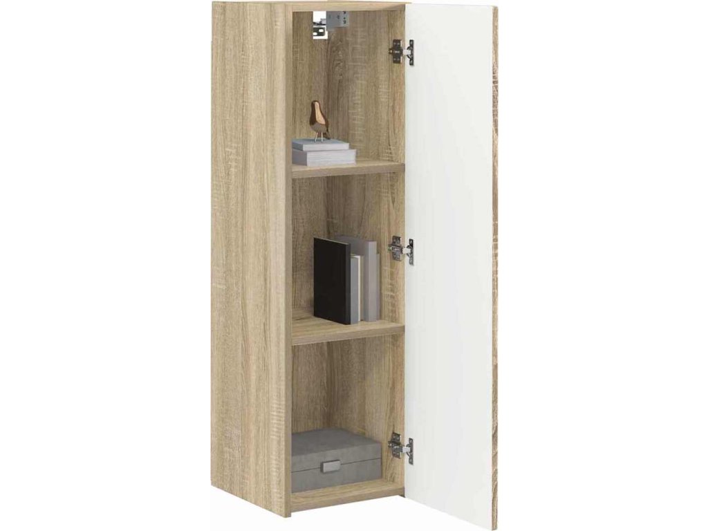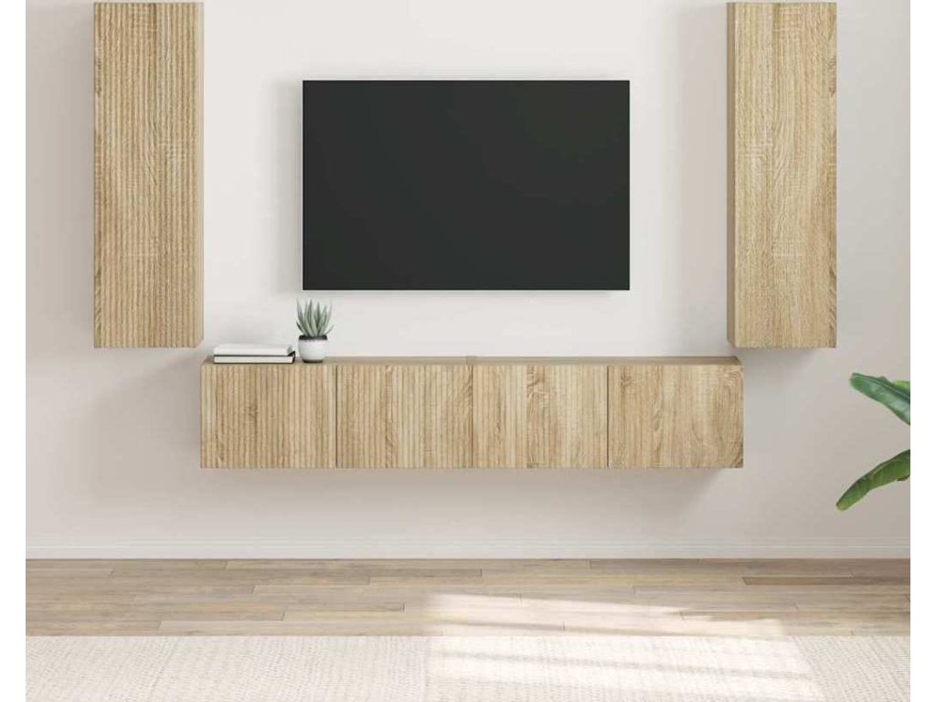 Tahle moderní TV nástěnná skříň je super praktickým a prostor šetřícím řešením pro každý obývák, skvěle spojuje pohodlí a styl. Díky elegantnímu a minimalistickému designu se stane středobodem vašeho domova, poskytuje funkčnost i estetickou přitažlivost. Jako nástěnná jednotka má spoustu úložného prostoru pro zábavní systémy a dekorace, takže vše bude na svém místě. Inženýrské dřevo zaručuje odolnou konstrukci, která vydrží každodenní používání a zachovává si přesto sofistikovaný vzhled.