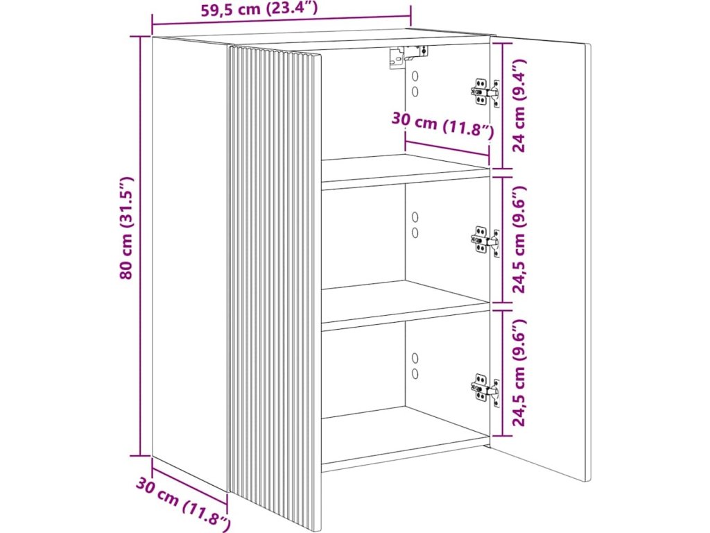 - Celkové rozměry: 59,5 x 31 x 80 cm (D x Š x V)