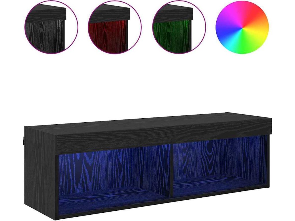 - Součásti: Skříňka má vícero úložných řešení se silnými policemi z kompozitního dřeva a pantovými dveřmi pro snadný přístup. Barevné LED pásky na USB přidávají moderní nádech a nabízí ambientní osvětlení, které zvýší atmosféru podle vaší nálady.