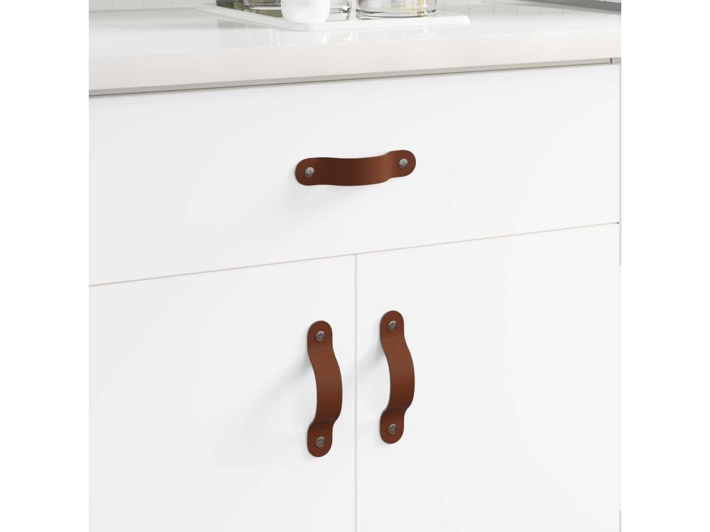 - Vysoce kvalitní materiály Tyhle úchyty na skříně se vyrábí z kůže a PU pěny, což jsou odolné, dlouhotrvající materiály. Kůže a přirozená hnědá barva dodávají styl, je to praktická volba. Materiály vydrží každodenní opotřebení, takže úchyty budou vypadat skvěle a fungovat dlouho.
