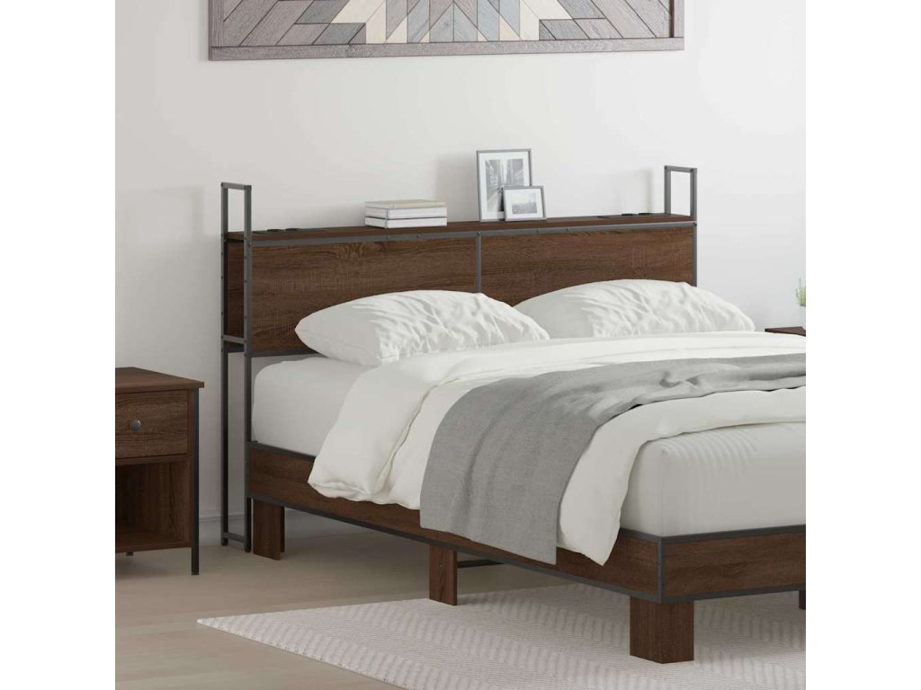 Úložná hlavová deska s nabíjecí stanicí s policí Hnědý dub [859809]