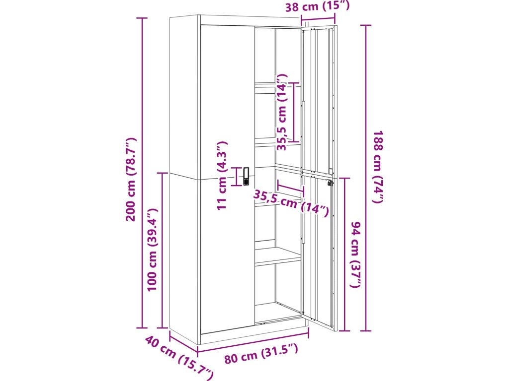 Úložná skříňka Olivově zelená 80 x 40 x 200 cm Ocel [3406194]