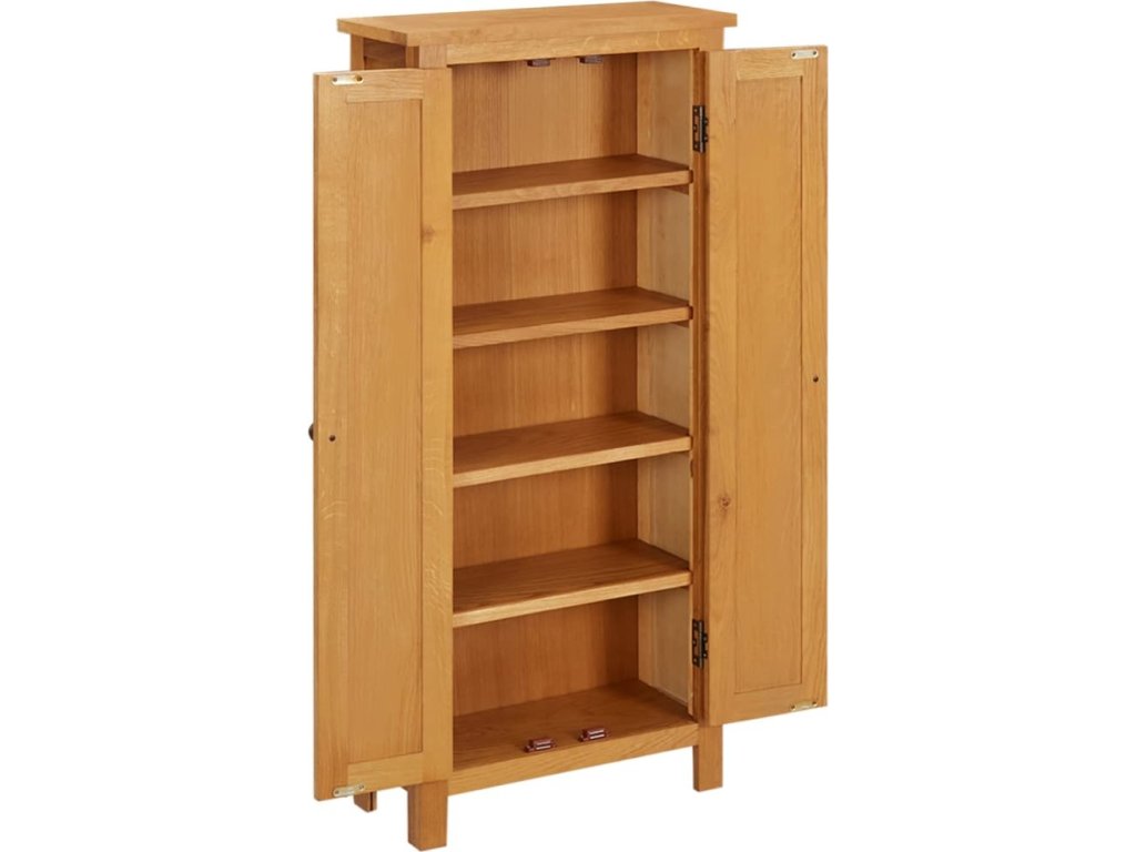 Skříňka je precizně vyrobena z masivního dubového dřeva, takže je pevná a výborně odolává opotřebení. Příborník poskytuje dostatek prostoru pro úhledné uspořádání knih, CD a DVD.