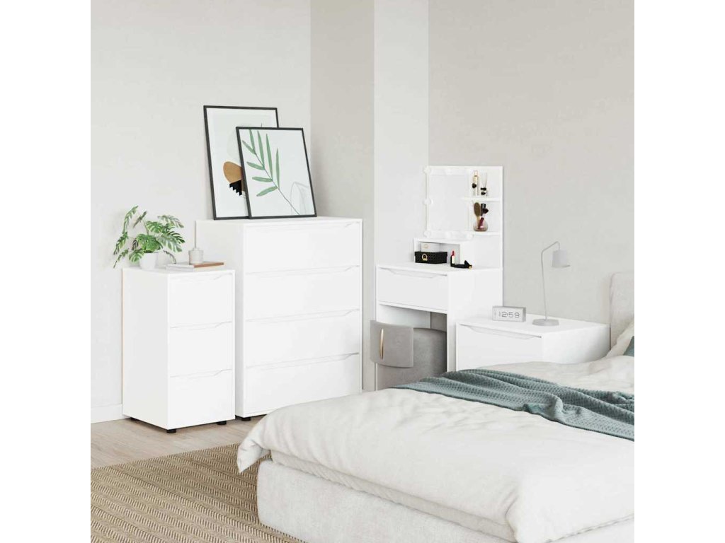Tato stylově zpracovaná úložná skříň spojuje minimalistický design s praktickou funkcionalitou. Skvěle se hodí do ložnic a obývacích pokojů, a její štíhlý obdélníkový tvar kombinuje pevnost inženýrského dřeva s hladkým povrchem, což dodá jakémukoli modernímu domovu trochu šmrncu. Nenápadný design ladí s minimalistickým stylem a zdůrazňuje jednoduchost, zatímco poskytuje dostatek úložného prostoru díky několika zásuvkám. Ocení ji ti, kdo cení jak formu, tak funkci.