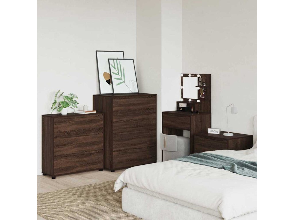 Tato stylově zpracovaná úložná skříň spojuje minimalistický design s praktickou funkcionalitou. Skvěle se hodí do ložnic a obývacích pokojů, a její štíhlý obdélníkový tvar kombinuje pevnost inženýrského dřeva s hladkým povrchem, což dodá jakémukoli modernímu domovu trochu šmrncu. Nenápadný design ladí s minimalistickým stylem a zdůrazňuje jednoduchost, zatímco poskytuje dostatek úložného prostoru díky několika zásuvkám. Ocení ji ti, kdo cení jak formu, tak funkci.