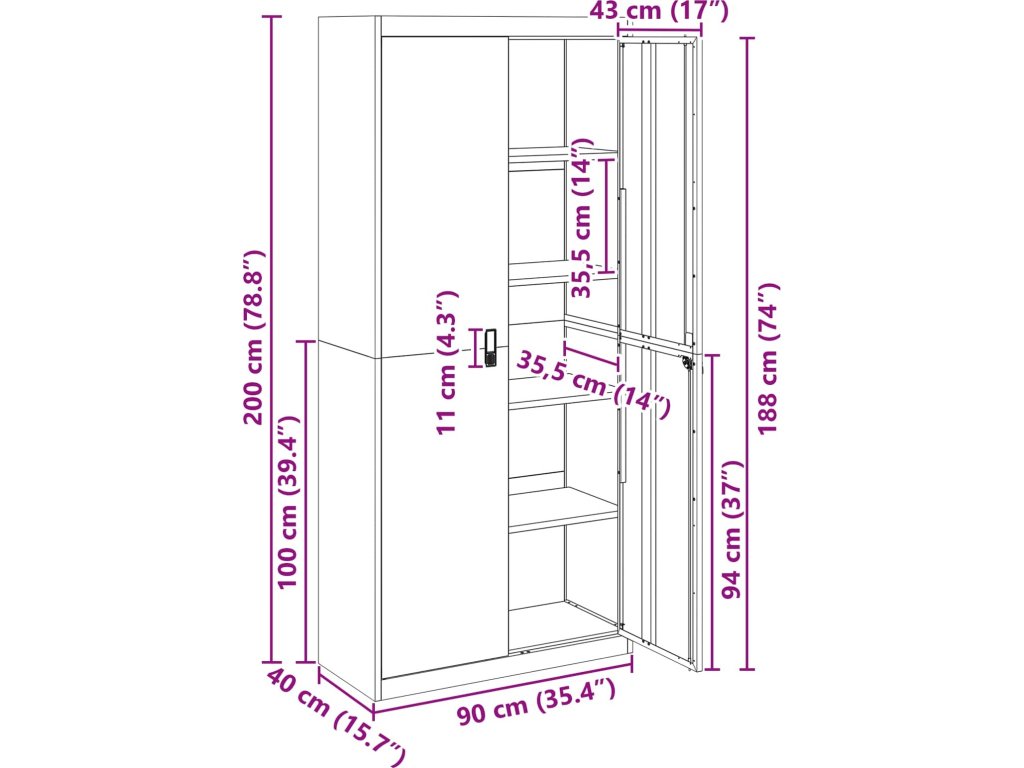 Úložná skříňka Antracit 90 x 40 x 200 cm Ocel [3406174]