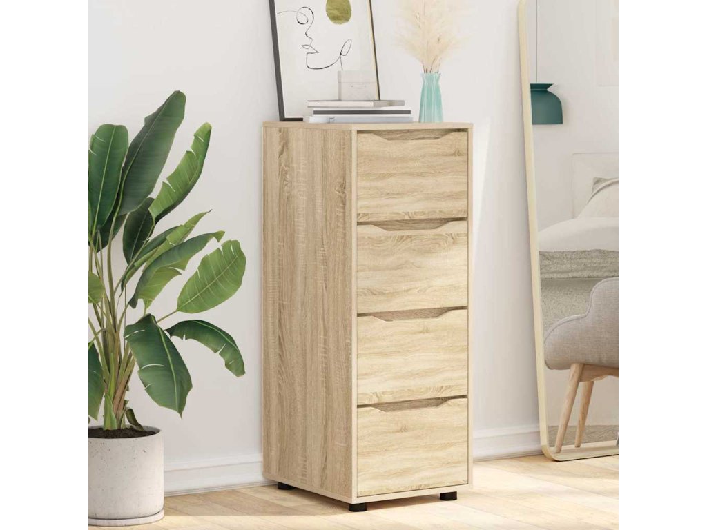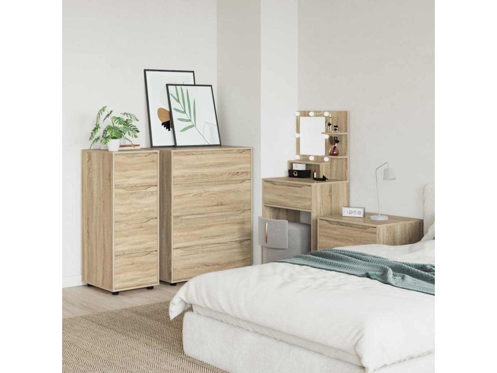 Tato stylově zpracovaná úložná skříň spojuje minimalistický design s praktickou funkcionalitou. Skvěle se hodí do ložnic a obývacích pokojů, a její štíhlý obdélníkový tvar kombinuje pevnost inženýrského dřeva s hladkým povrchem, což dodá jakémukoli modernímu domovu trochu šmrncu. Nenápadný design ladí s minimalistickým stylem a zdůrazňuje jednoduchost, zatímco poskytuje dostatek úložného prostoru díky několika zásuvkám. Ocení ji ti, kdo cení jak formu, tak funkci.