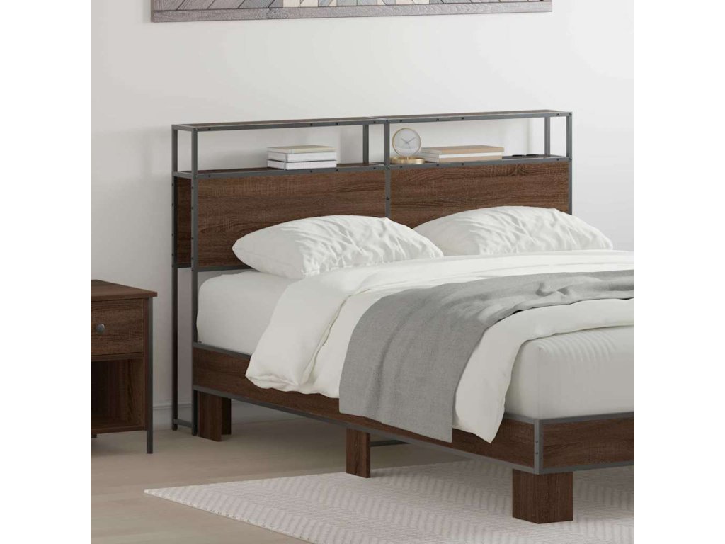 Úložné čelo postele s policí Hnědý dub 120 cm Kompozitní dřevo [859744]