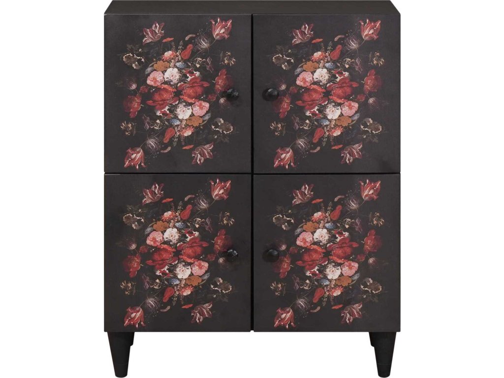 - Výrazné rysy: Skříň je ozdobená nádherným květinovým vzorem, který dodává prostoru umělecký prvek. Mosazné úchyty přidávají dotek elegance a skvěle se drží. Tyto detaily poskytují nejen estetický zážitek, ale i praktickou užitečnost.