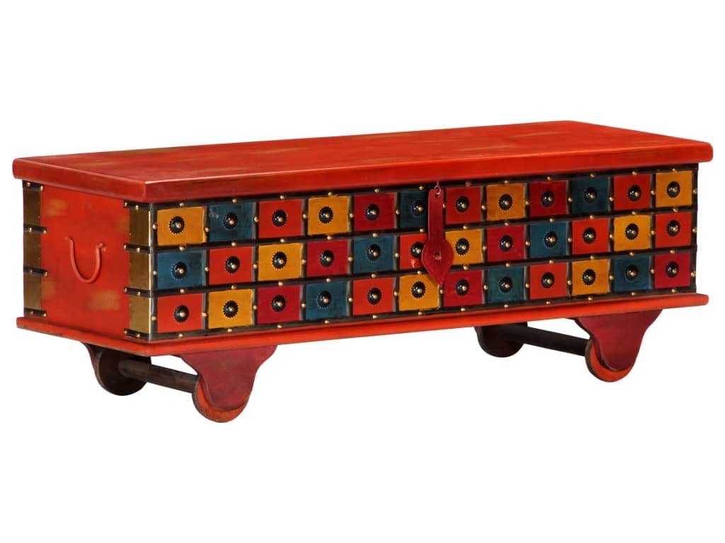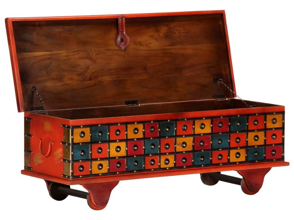 Úložná truhla je vyrobená z masivní akácie, což je tropické tvrdé dřevo s překrásnou kresbou, box je tudíž odolný a jen tak se neponičí. Uvnitř najdete spoustu místa, kam si můžete přehledně uspořádat nejrůznější věci a drobnosti. Jelikož má tato úložná truhla stabilní ploché víko, nic nebrání tomu, abyste ji mohli vtipně využít též jako konferenční stolek, na který si můžete postavit vaše nápoje, vázy a další dekorativní předměty.
