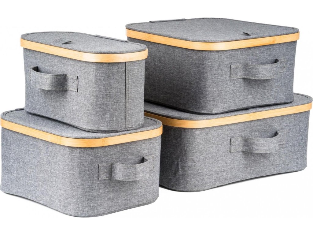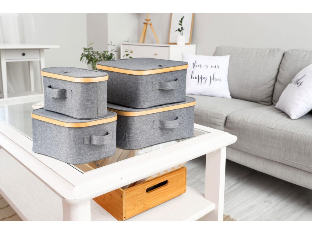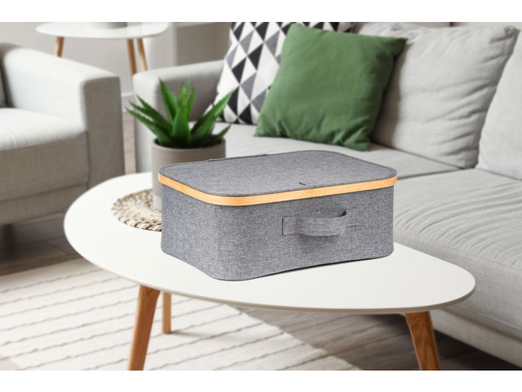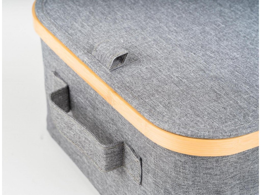 Úložný box G21 40 x 30 x 15 cm, bambusový s víkem, šedý [6355530]