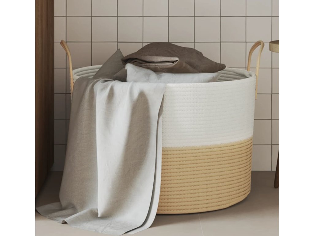 - Odolný materiál: Tkaný koš je vyroben z tkaných bavlněných provazů, které vynikají svou prodyšností, měkkostí a výjimečnou odolností.