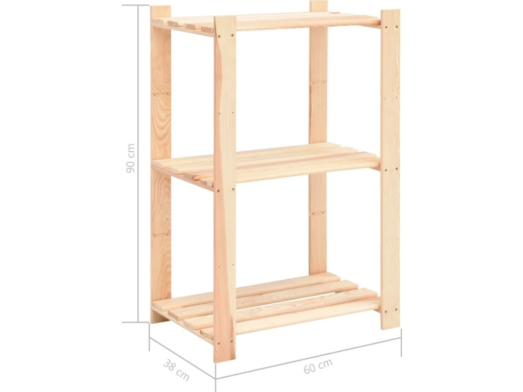 Úložný regál 3 police 60 x 38 x 90 cm masivní borovice 150 kg [286201]