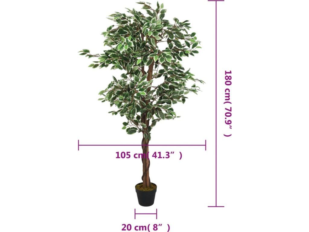 - Realistický vzhled: Umělý fíkus má listy z textilních vláken, které se podobají listům skutečného fíkusu, a dřevěné kmeny, které svou přirozenou strukturou a barvou dodávají autentičnost. Tyto prvky společně dodávají stromku svěží a živý vzhled.