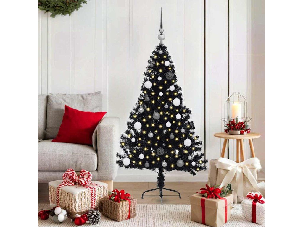 Umělý osvětlený vánoční stromeček Černá 150 cm PVC [3397127]