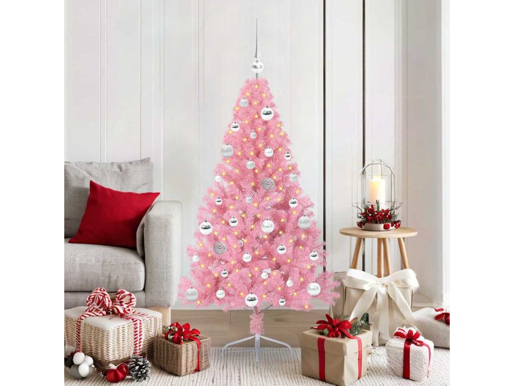 Umělý osvětlený vánoční stromeček Růžová 150 cm PVC [3397068]