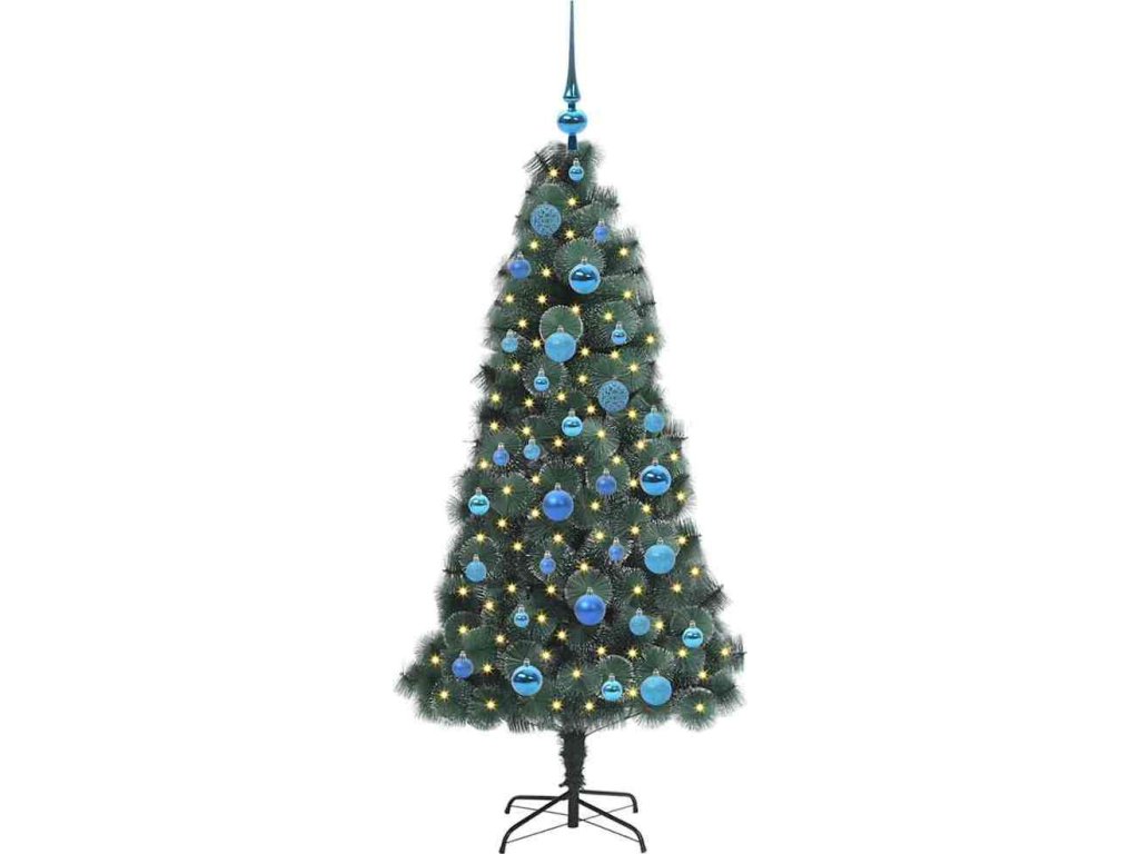 Umělý osvětlený vánoční stromeček s sadou koulí Zelená 150 cm [3396160]