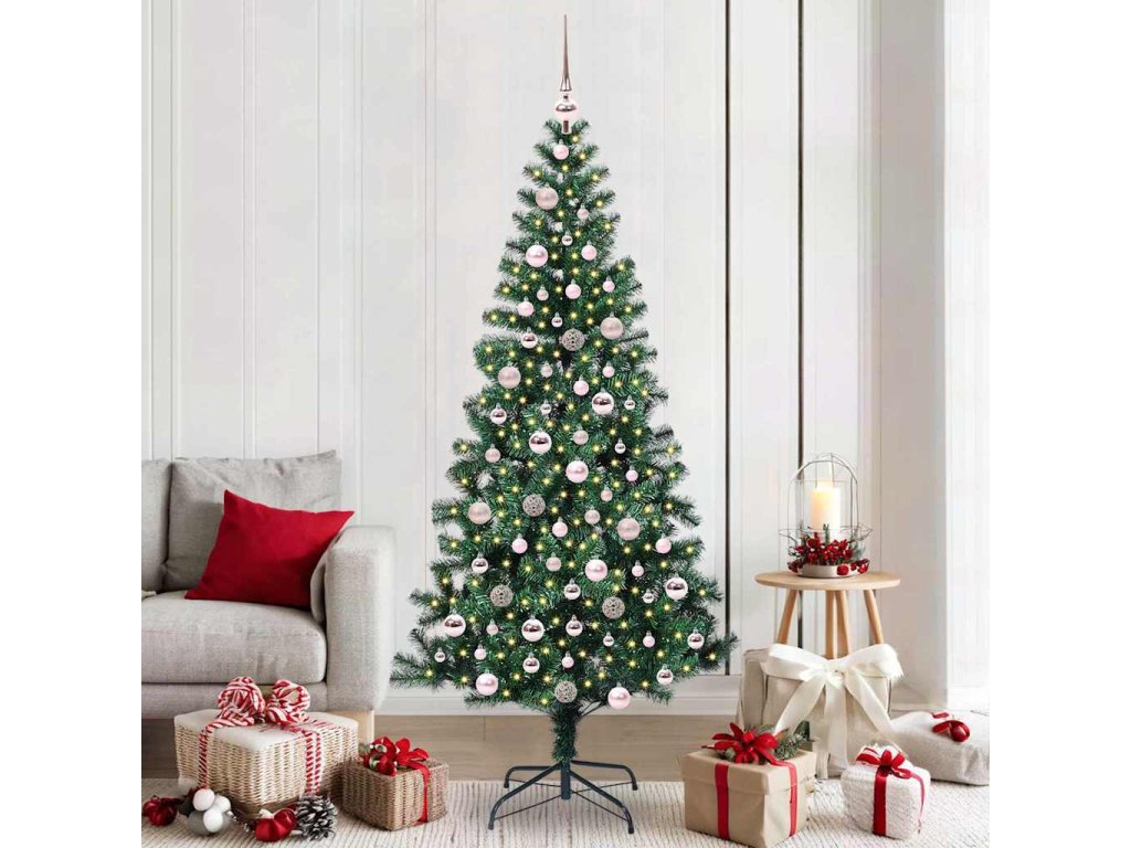 Umělý osvětlený vánoční stromeček Zelená 210 cm PVC a kov [3396777]