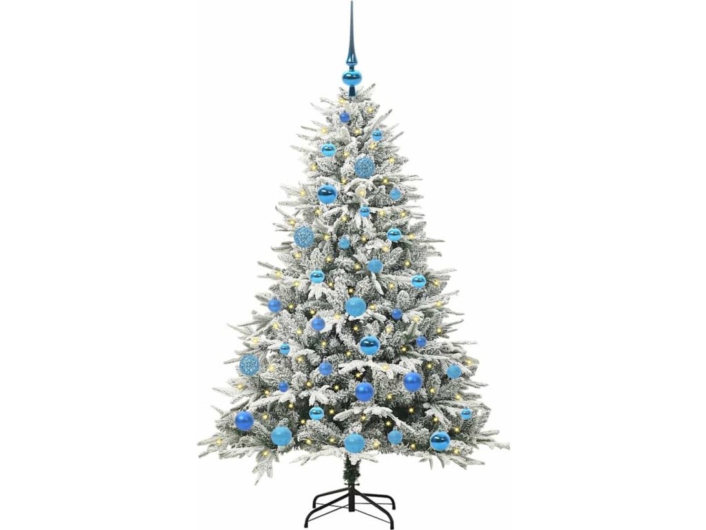 Umělý přednažený vánoční stromek se soupravou koulí Zelená [3395391]