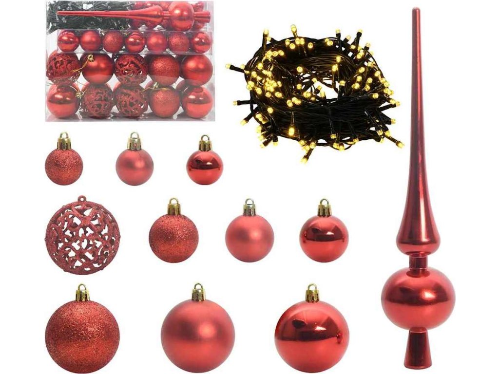Umělý přednažený vánoční stromek se soupravou koulí Zelená [3395397]