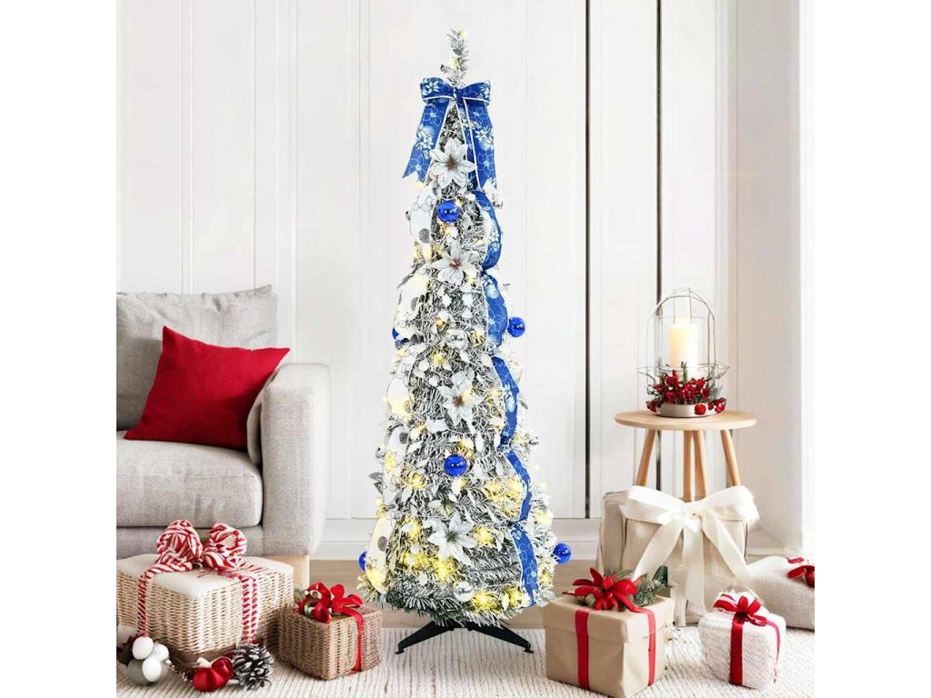 - Skládací design: Jeho plně skládací konstrukce usnadňuje sestavení a rozebrání. Uložení je hračka; jakmile svátky skončí, stromeček se jednoduše složí, což je super pro ty, kdo mají málo místa.