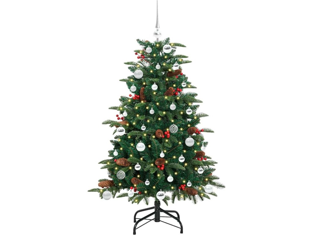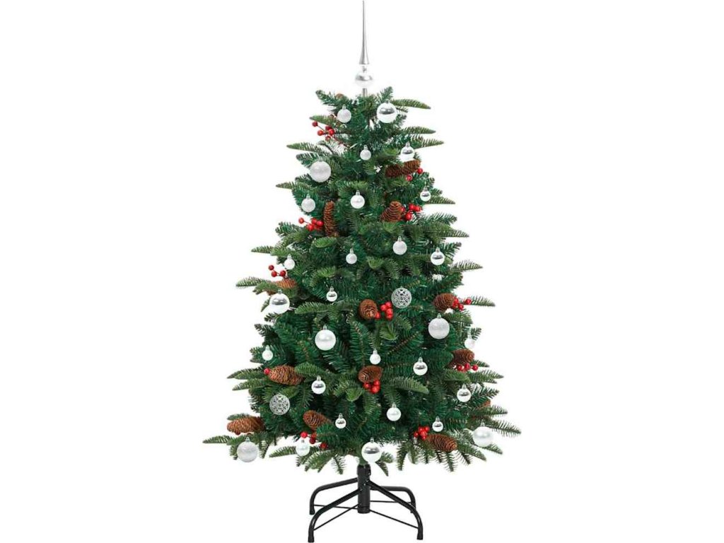 - Materiály: Vyrobený z PVC, kovu a plastu, tento stromeček spojuje odolnost s hezkým vzhledem. PVC špičky napodobují skutečné větve a dodávají stromečku plnost. Kov zajišťuje stabilitu a plast přispívá k trvanlivosti, což znamená, že si ho můžete užívat několik sezón.