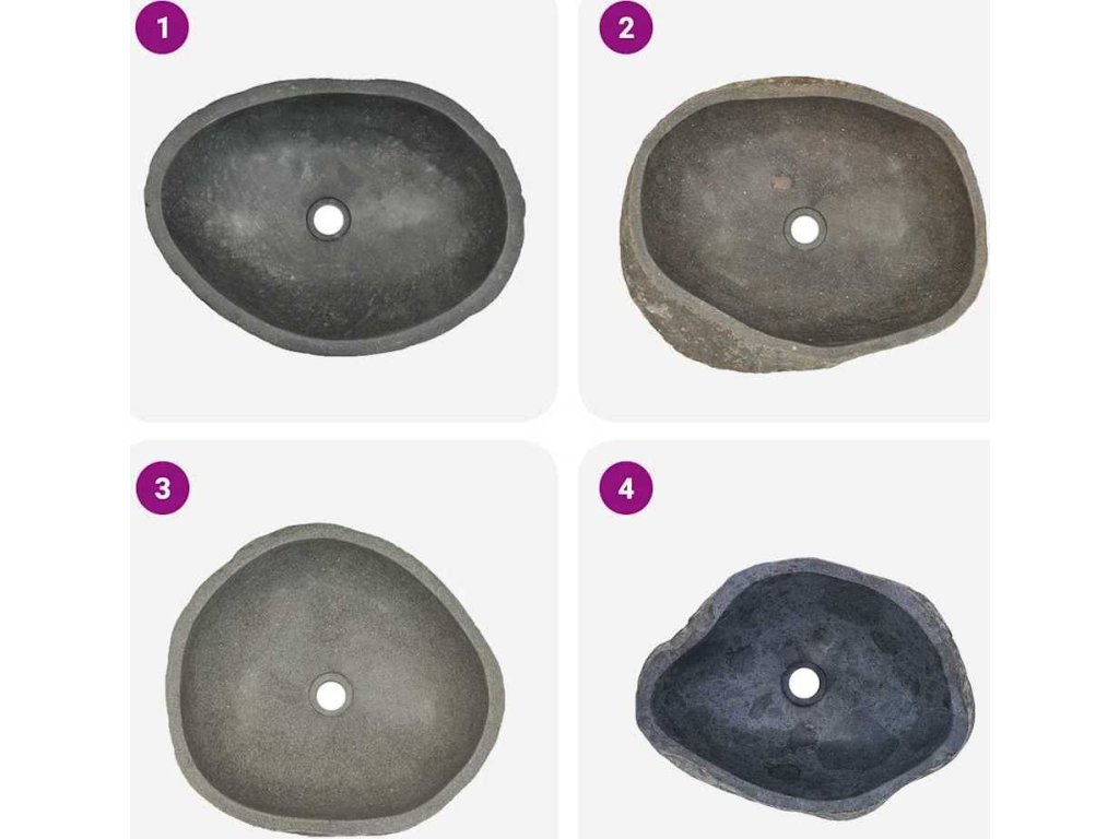 Poznámka: Říční kámen je přírodní produkt, a proto se v jeho zbarvení a tvaru mohou vyskytovat drobné rozdíly, prohlédněte si prosím fotografie produktu. Skutečný produkt může být světlejší nebo tmavší než na fotografiích a v jeho zbarvení se též mohou vyskytnout kombinace různých barev. V případě objednání více umyvadel nelze zaručit, že budou mít stejnou velikost, tvar a barvu.