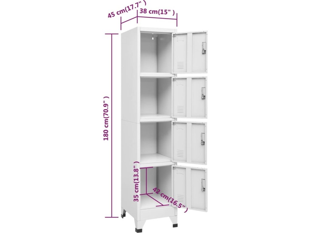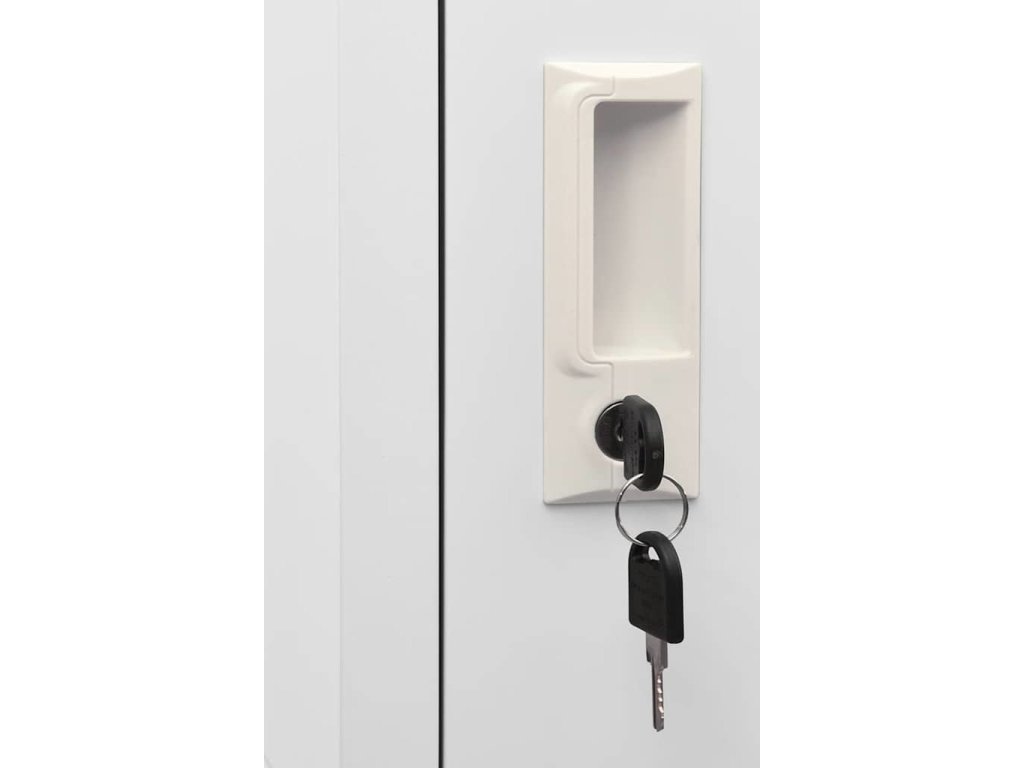 Úložná skříňka je vyrobena z oceli, proto má dlouhou životnost a snadno se čistí. Každá přihrádka je vybavena uzamykatelnými dvířky s větracími otvory. Skříň má dostatek úložného prostoru pro bezpečné uložení oblečení a dalších osobních věcí. Držáky na štítky umožňují přehledně třídit vaše položky. Tato skříň je vhodná do škol a kanceláří k uložení nejrůznějších věcí.