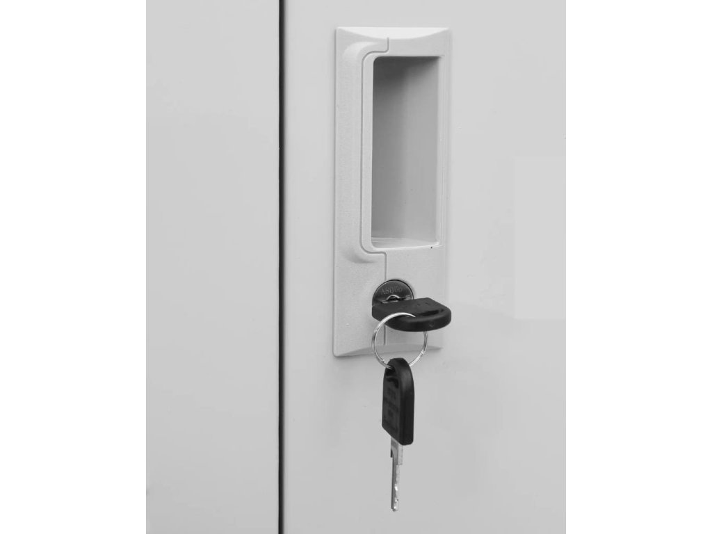 Skříňka je vyrobena z oceli, takže je odolná a snadno se čistí. Tento úložný organizér se zámky nabízí spoustu úložného prostoru pro nejrůznější předměty, jako je obuv, tašky, knihy, složky atd. Skříňka se skvěle hodí do škol i kanceláří na skladování různých věcí.