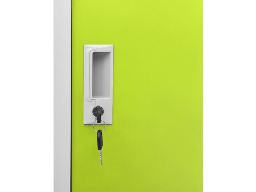 Skříňka je vyrobena z oceli, takže je odolná a snadno se čistí. Tento úložný organizér se zámky nabízí spoustu úložného prostoru pro nejrůznější předměty, jako je obuv, tašky, knihy, složky atd. Skříňka se skvěle hodí do škol i kanceláří na skladování různých věcí.