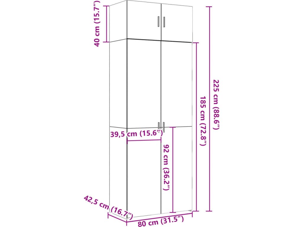 - Celkové rozměry: 80 x 42,5 x 225 cm (Š x H x V)