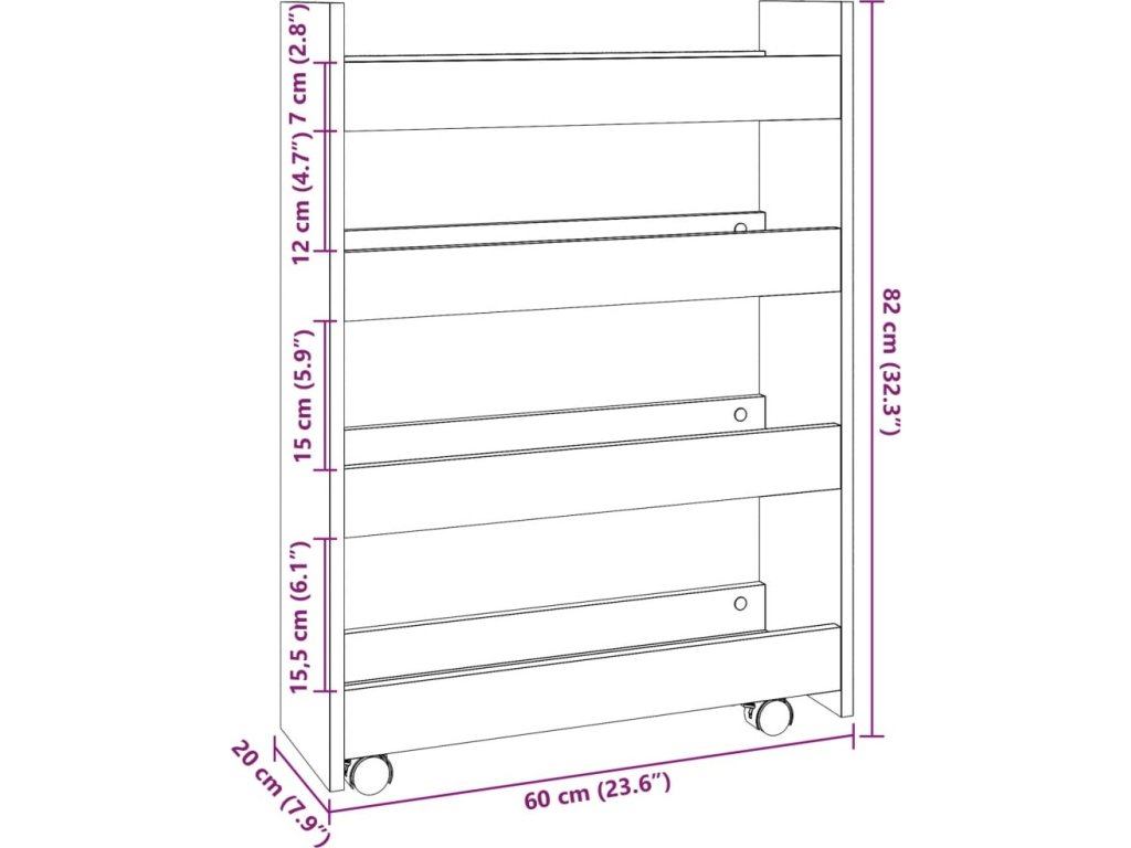 Úzký úložný vozík se 4 patry, , z umělého dřeva [855263]